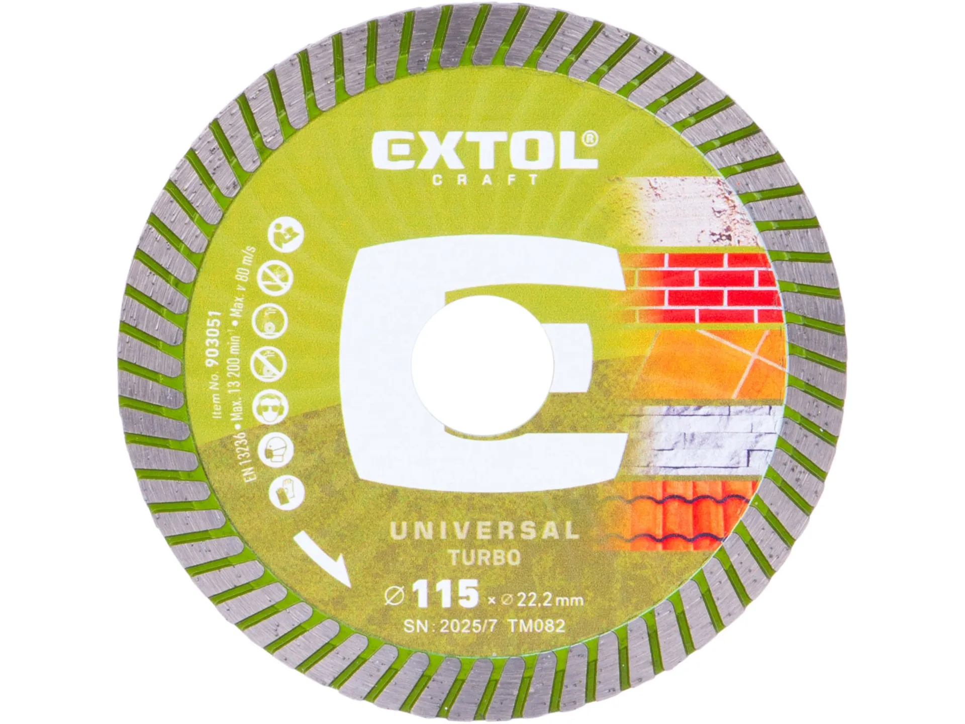 Kotouč diamantový řezný, turbo - suché i mokré řezání, o 115x22,2x2mm EXTOL CRAFT 903051
