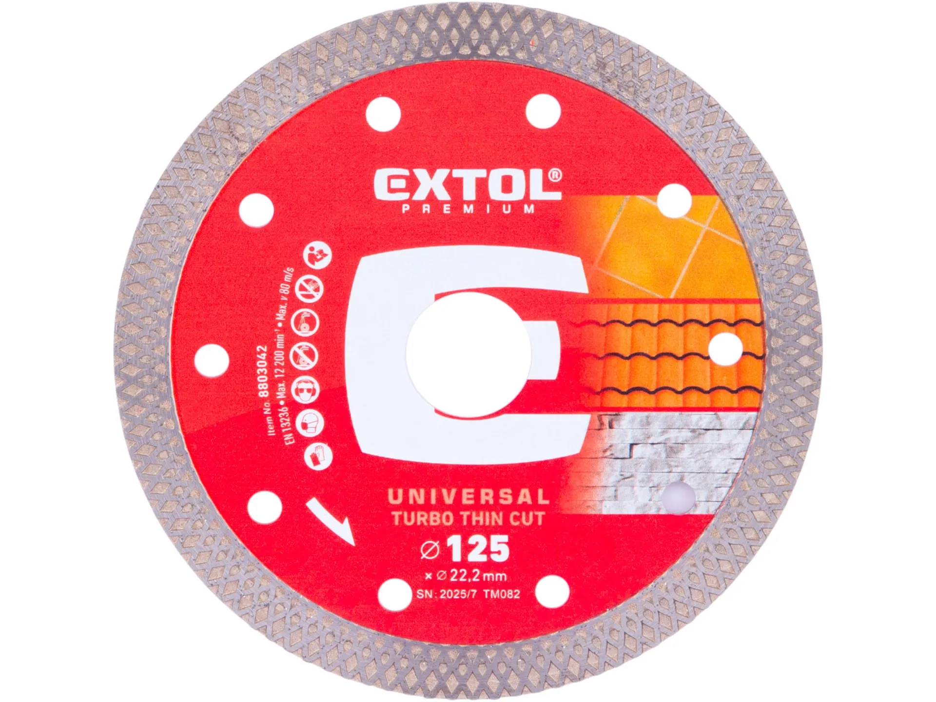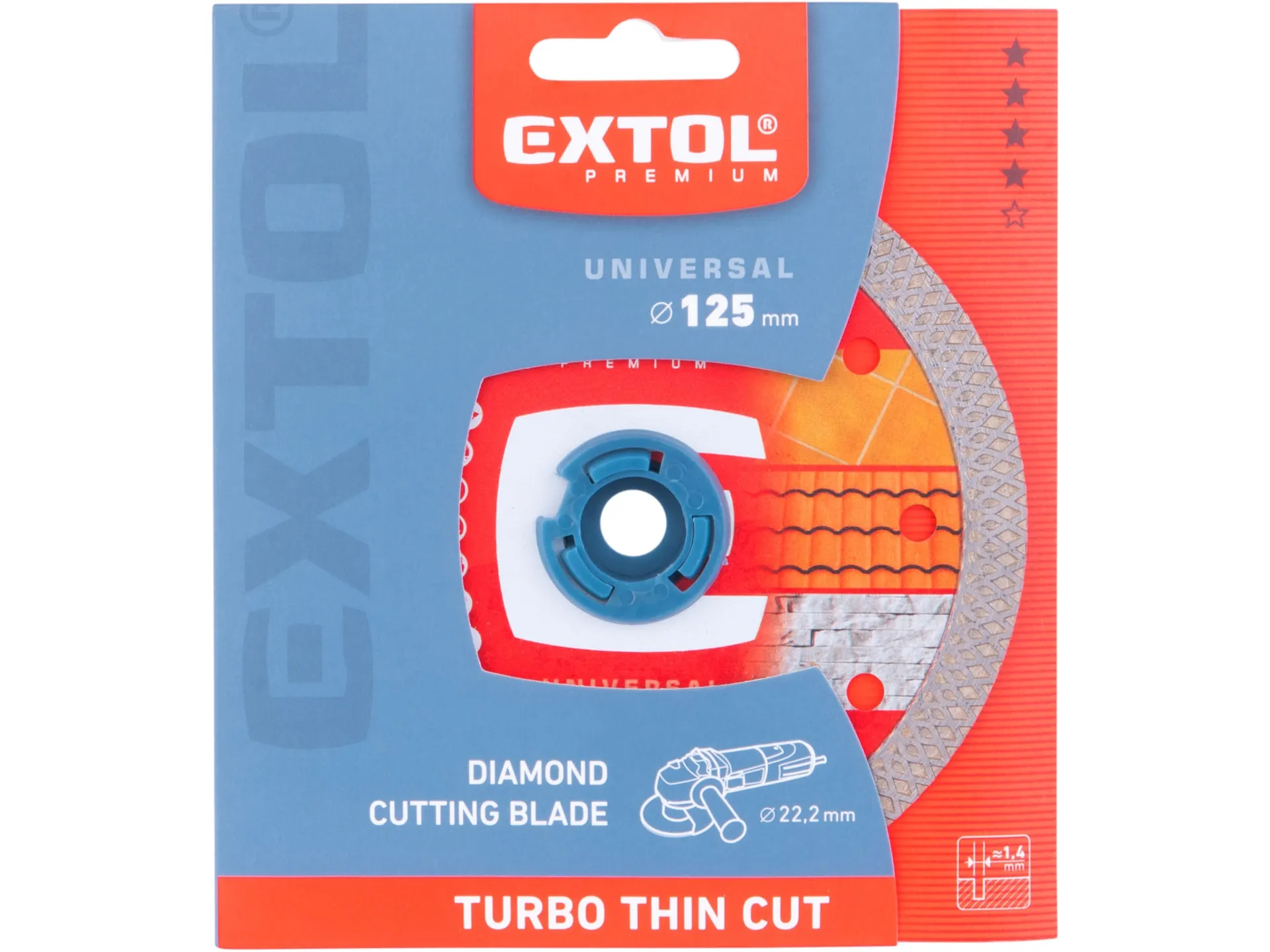 Kotouč diamantový řezný, turbo thin cut, suché i mokré řezání, o 125x22,2x1,4mm EXTOL PREMIUM 8803042