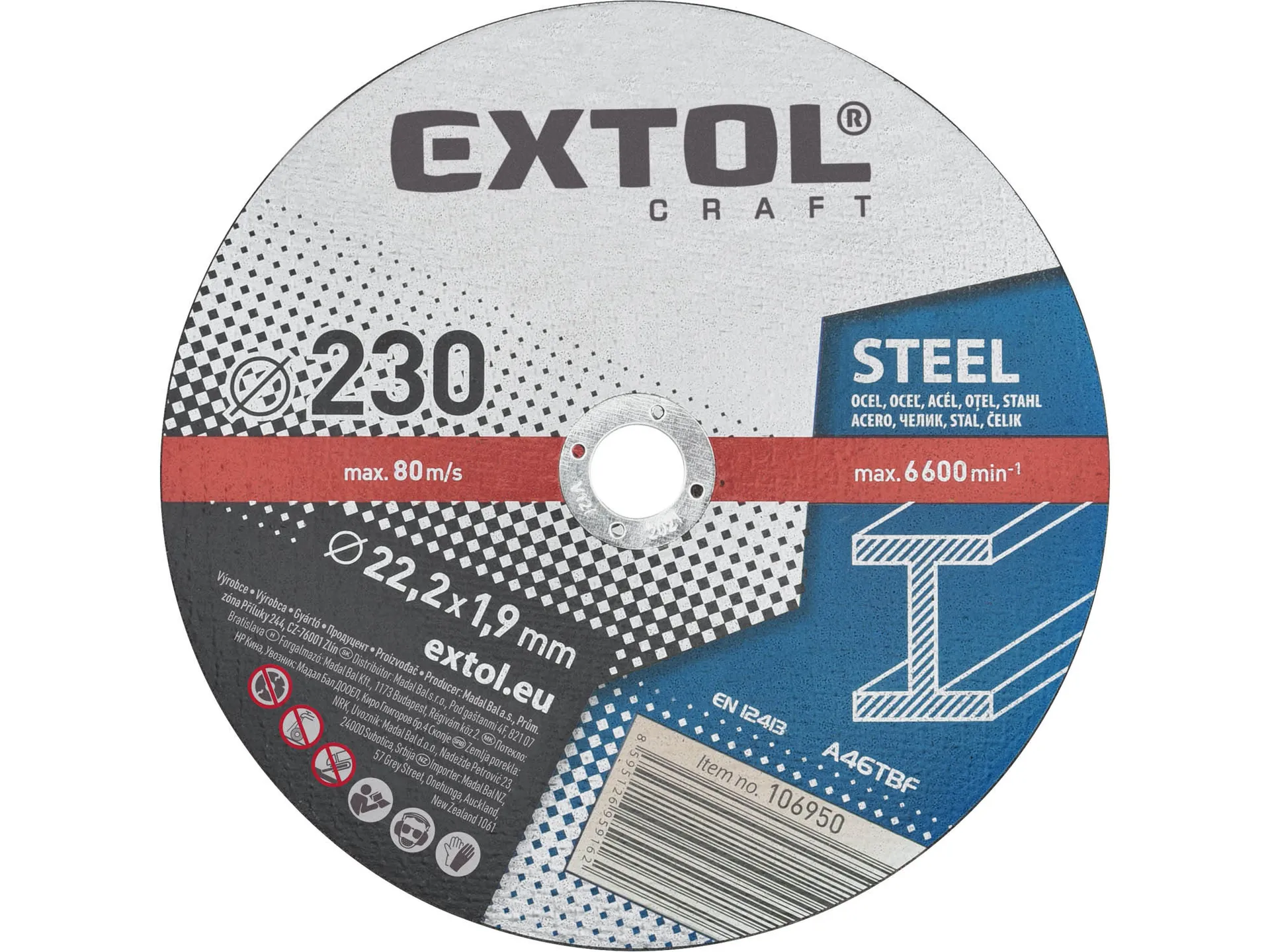 Kotouče řezné na kov, 5ks, o 230x1,9x22,2mm EXTOL CRAFT 106950