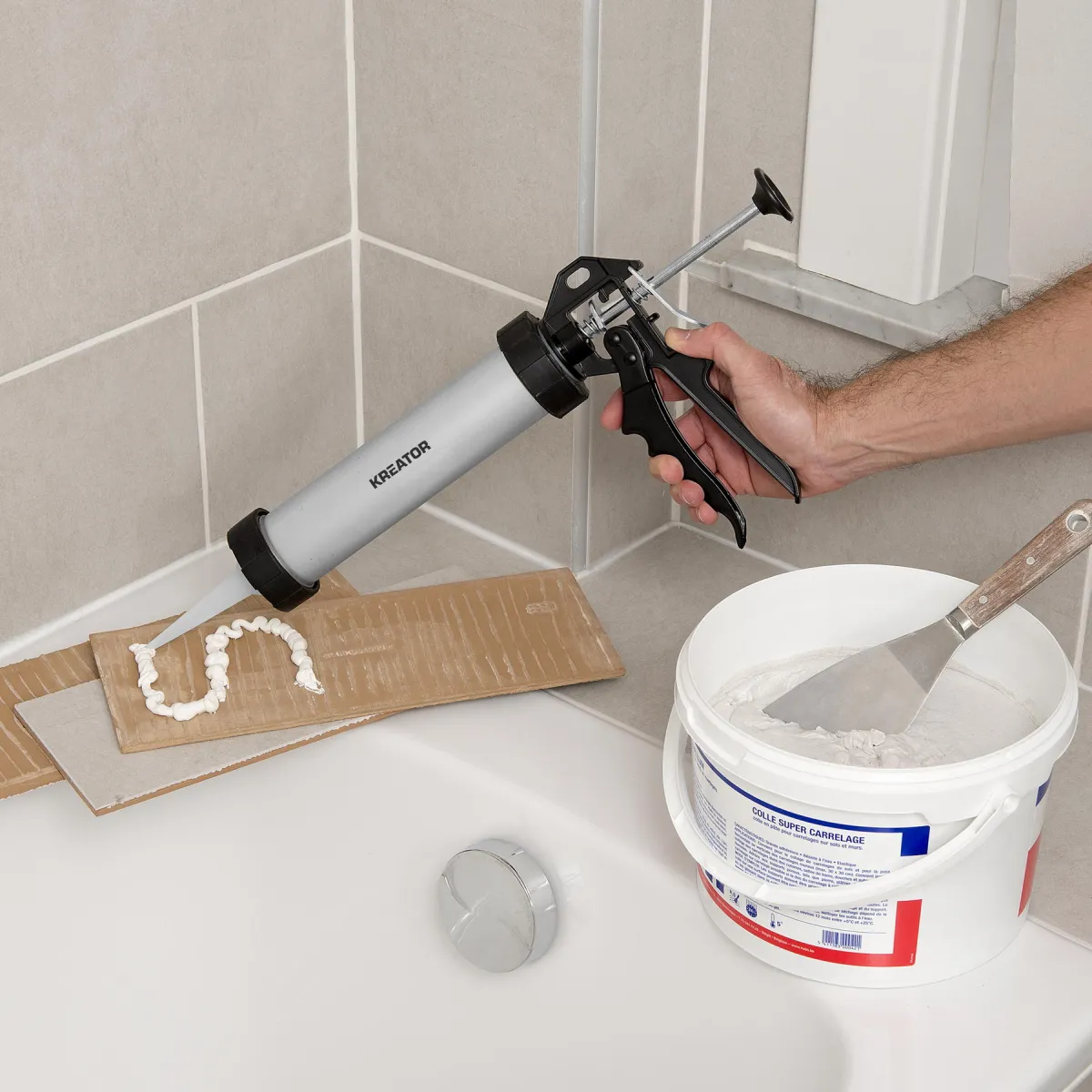 - Tuto vytlačovací pistoli KRTH40004 od Kreator použijte k snadnému nanášení tmelu nebo lepidla.