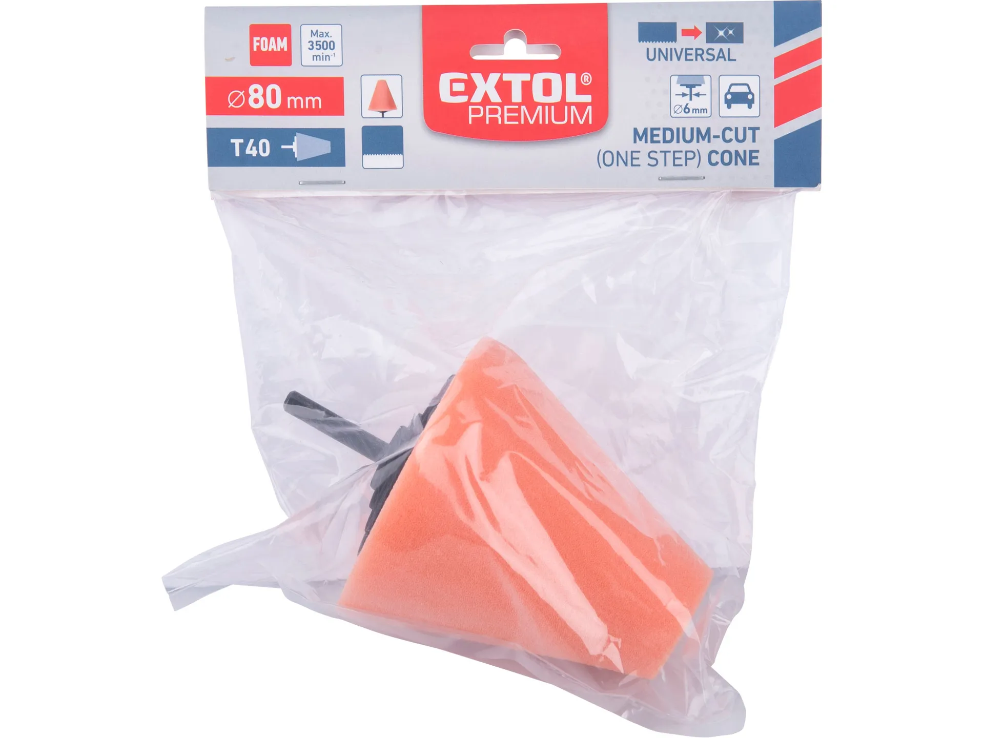 Kužel leštící pěnový, t40, oranžový, ⌀80mm, stopka 6mm EXTOL PREMIUM 8804567