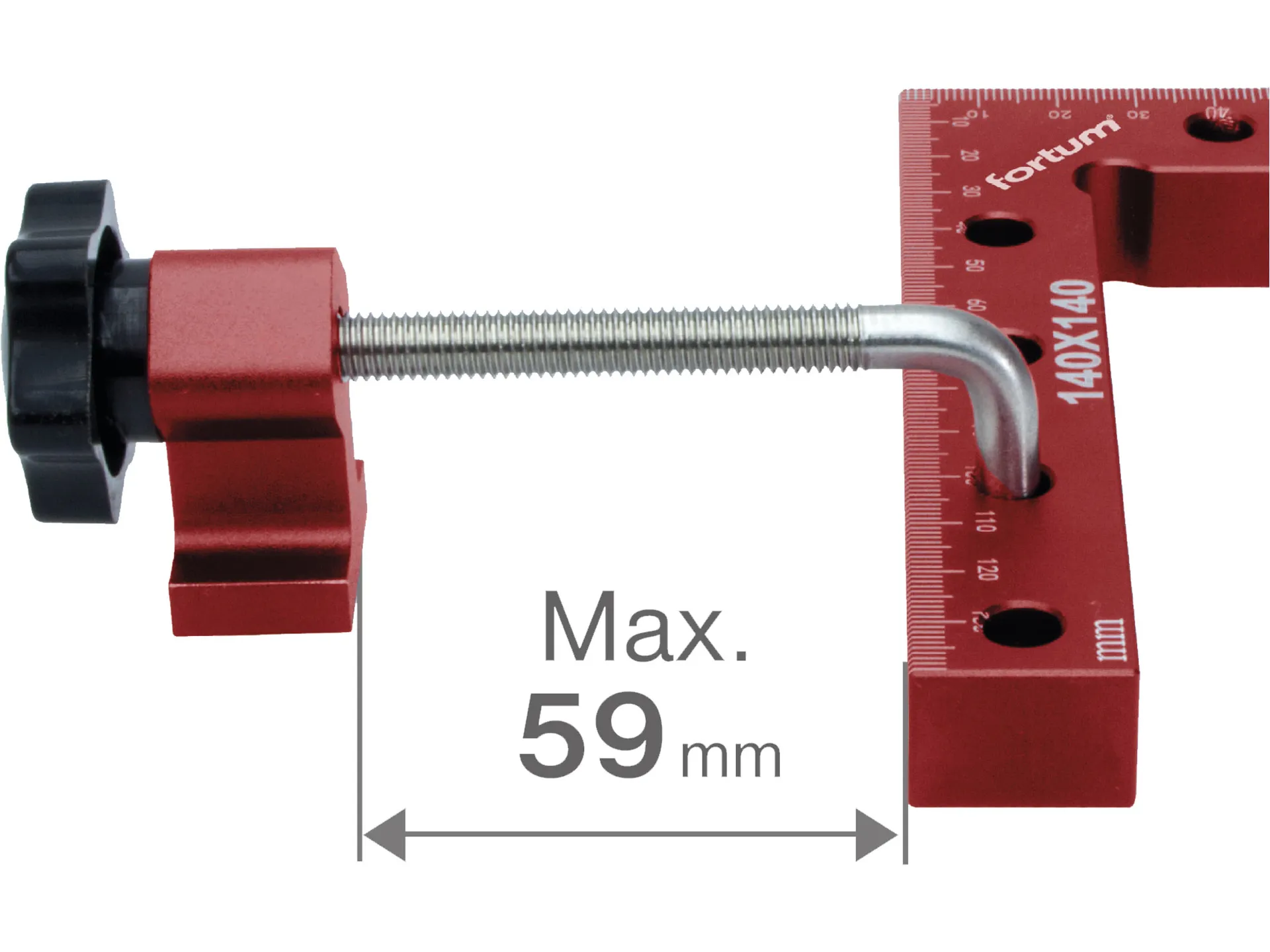 - Doplňující parametr: tloušťka upnutí 0-59mm, L-svorky a přítlačný člen jsou vyrobeny z anodizovaného hliníku