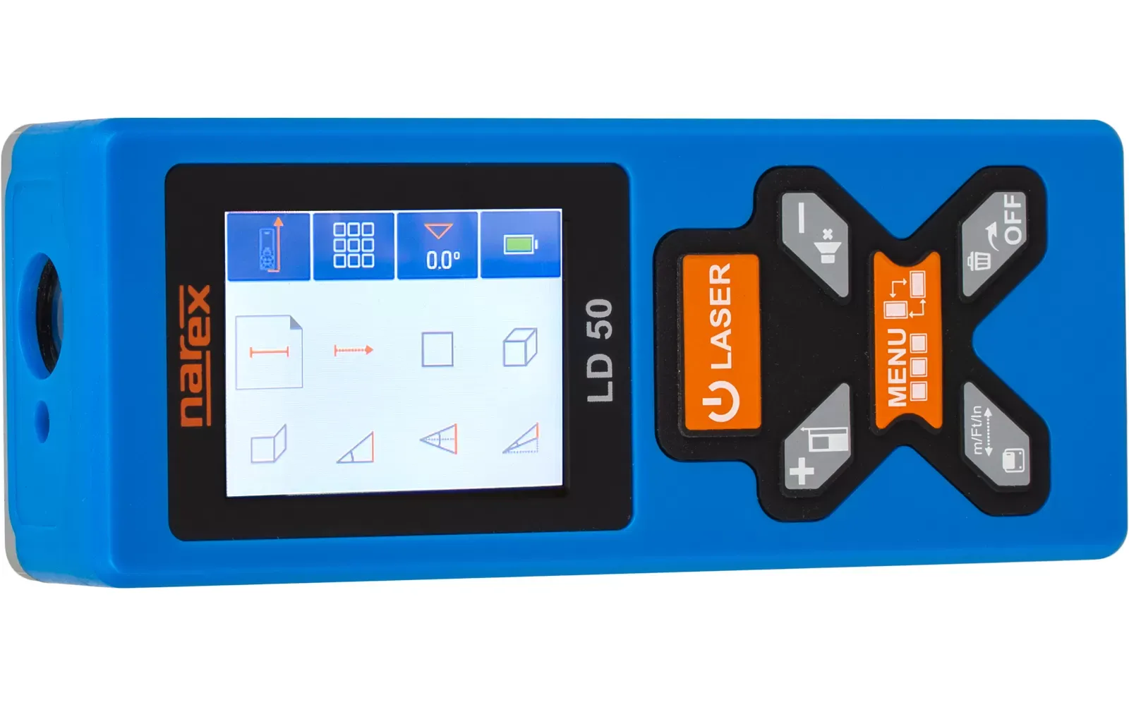 - Bohaté MENU nabízí všechny důležité měřící režimy (jj. standardní výpočet délky, plochy a objemu, nepřímý výpočet výšky s pomocí goniometrických funkcí, kontinuální snímání vzdáleností), ale také celou řadu dalších praktických a užitečných režimů a funkcí, např. automatické snímání náklonu, zjednodušený výpočet plochy nad složitým půdorysem (funkce pro malíře), měření vzdálenosti s časovým zpožděním až 30 s, digitální bublinkovu vodováhu, nebo např. kalibraci úhlu náklonu.