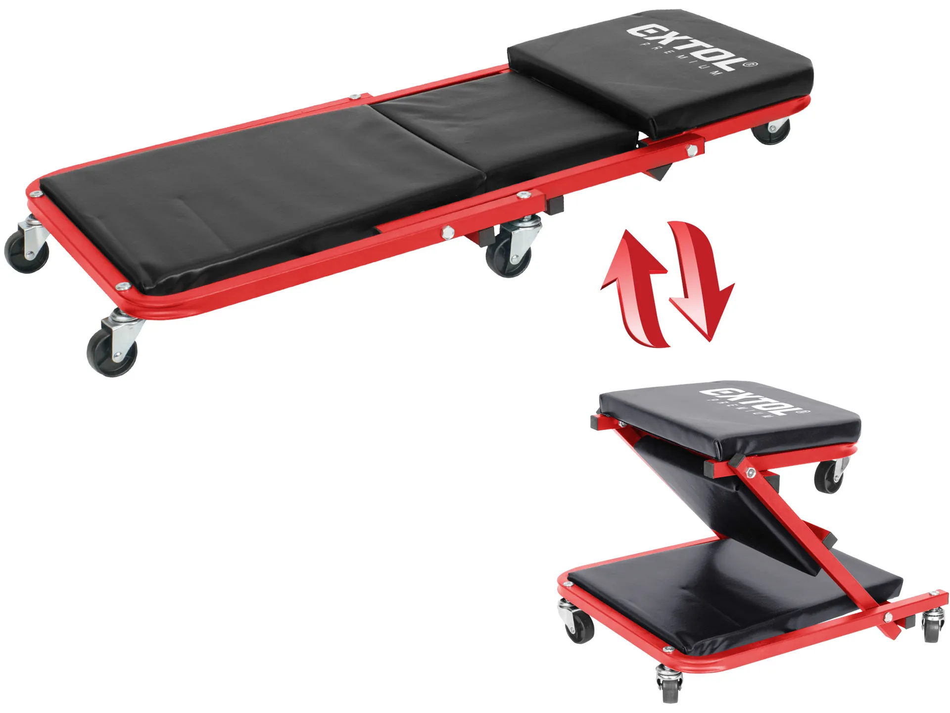 Lehátko/sedák 2v1, montážní pojízdné, rozloženo 91x41x12cm, až 150/120kg EXTOL PREMIUM 8863302