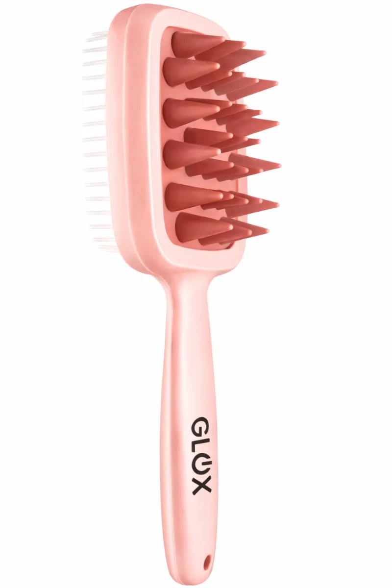 - Masážní kartáč GLOX jemně exfoliuje pokožku hlavy, účinně ji čistí a zároveň stimuluje prokrvení.