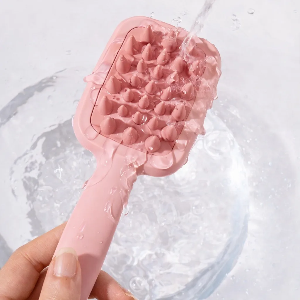 - Jemné silikonové štětiny šetrně masírují pokožku hlavy a pomáhají odstranit odumřelé kožní buňky i přebytečný maz.