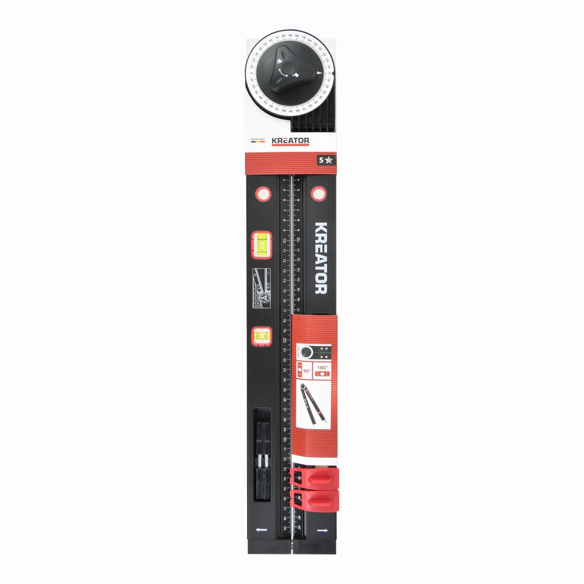 - Tento multifunkční úhloměr KRTH75001 z naší řady Kreator umožňuje měřit a označovat vnitřní, vnější nebo protilehlé úhly.
