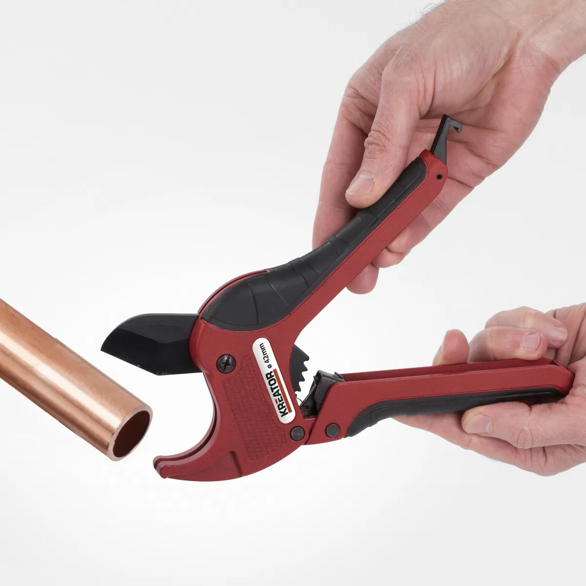 - Tyto vysoce kvalitní nůžky KRTH00603 od Kreator na trubky dokáží bez námahy stříhat hliníkové, měděné a PVC trubky o průměru 3 mm – 42 mm.