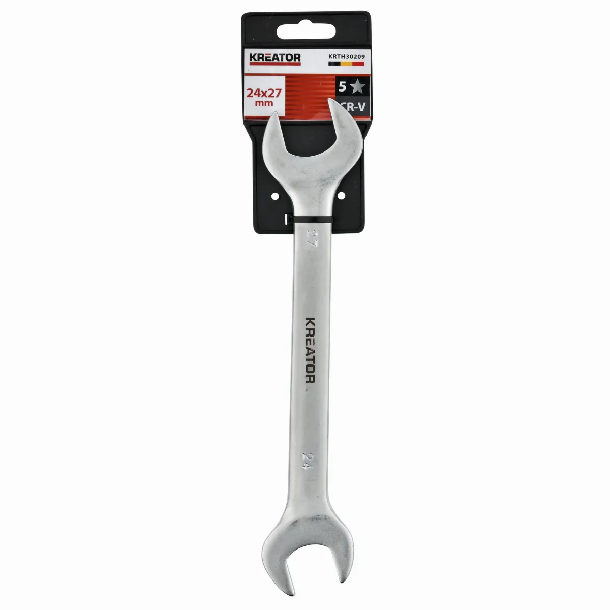 - Tento dvojitý otevřený klíč KRTH30209 značky Kreator má délku 250 mm a je vyroben z vysoce kvalitního chrom-vanadiového slitiny.