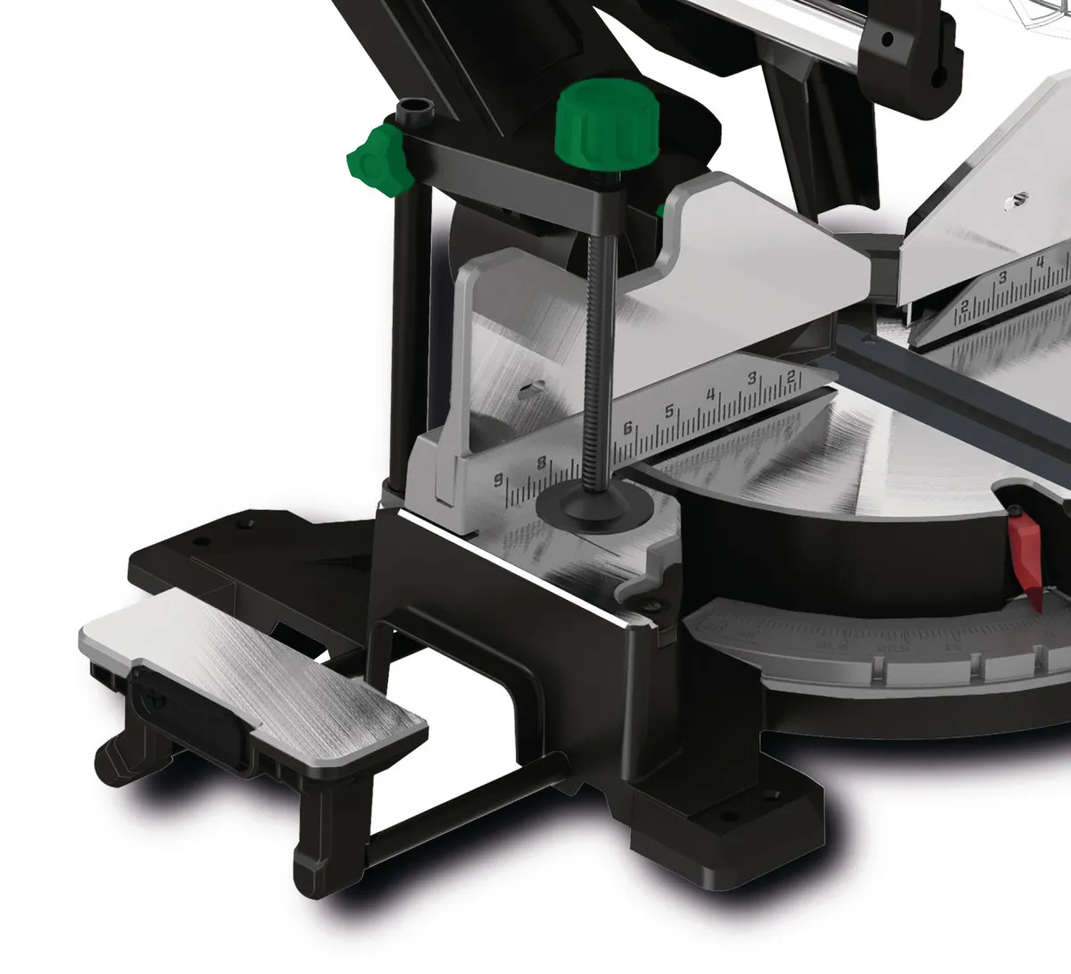 - Základová deska a otočný talíř ze slitiny hliníku dělají z této pily kompaktní, robustní a snadno přemístitelný stroj
