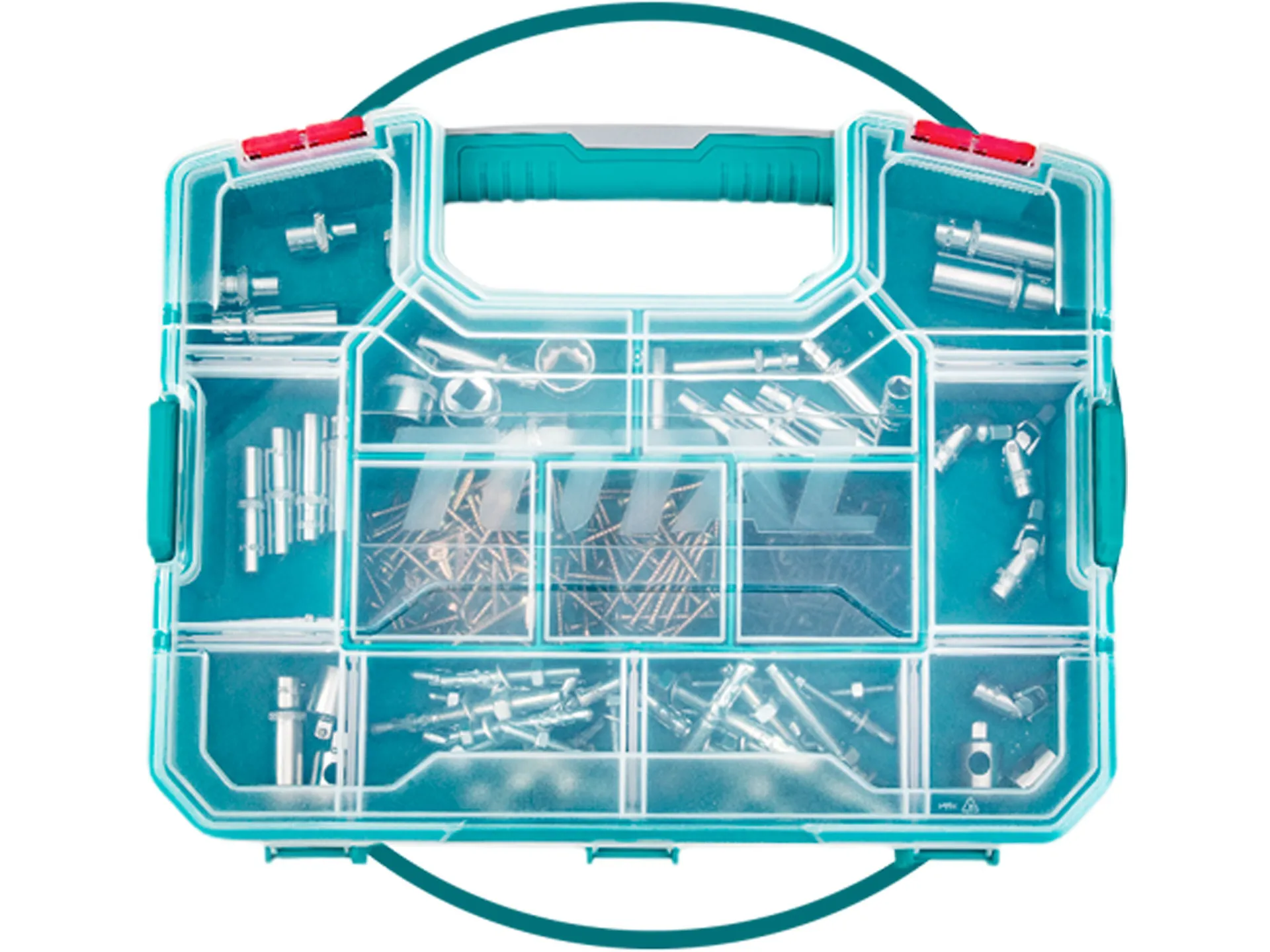 - Organizér z tvrzeného plastu. Rozměry organizéru jsou 37cmx29cmx6,5cm. Organizéry jsou na sebe stohovatelné a bočně uzamykatelné. Organizér má uvnitř odmímatelné přepážky, díky čemuž si je můžete nastavit jak potřebujete.