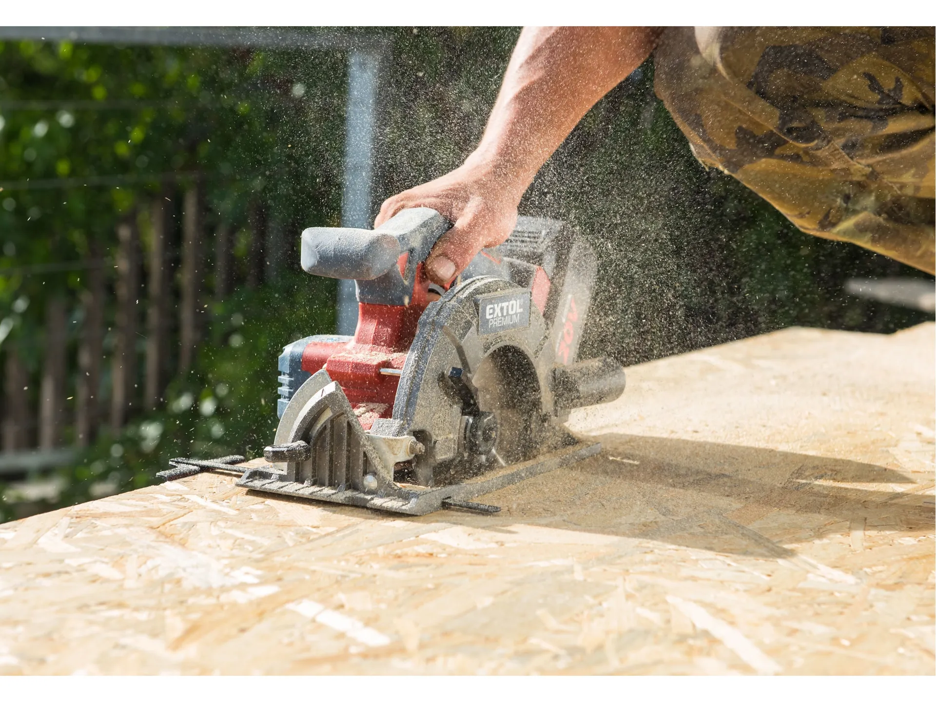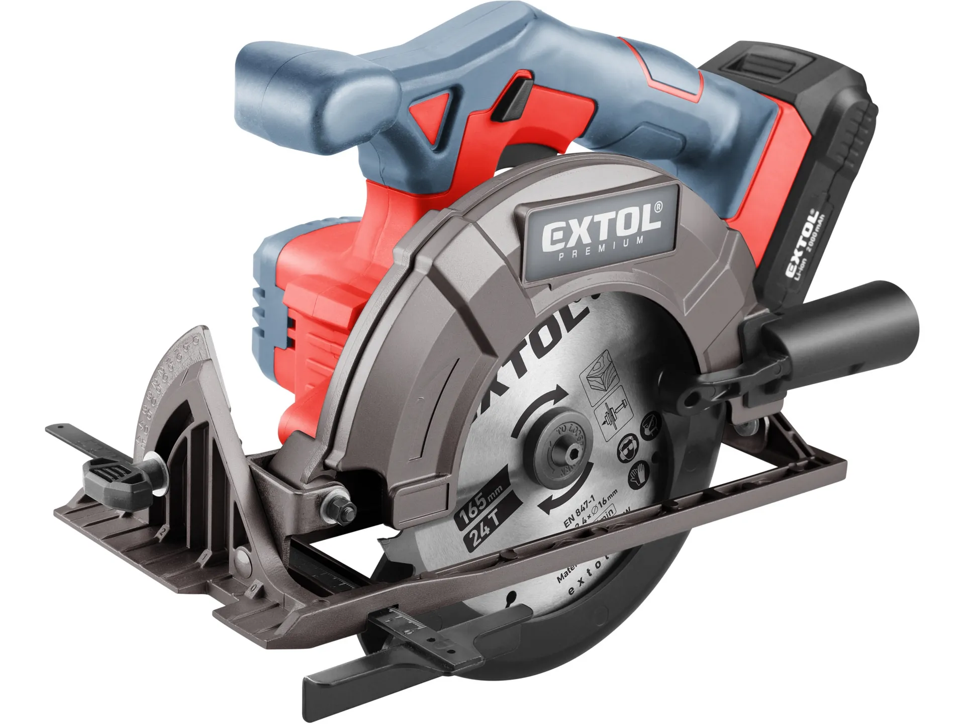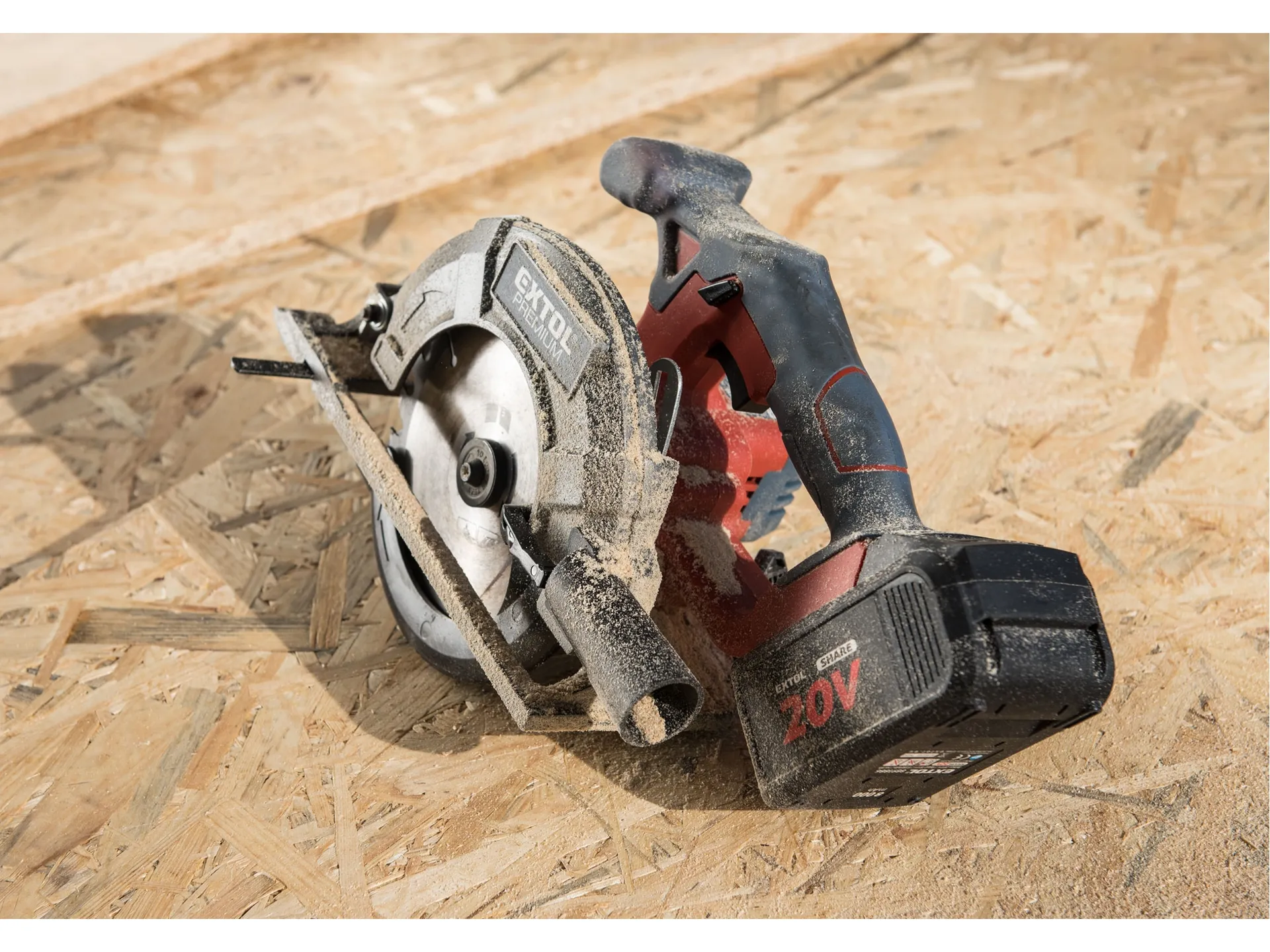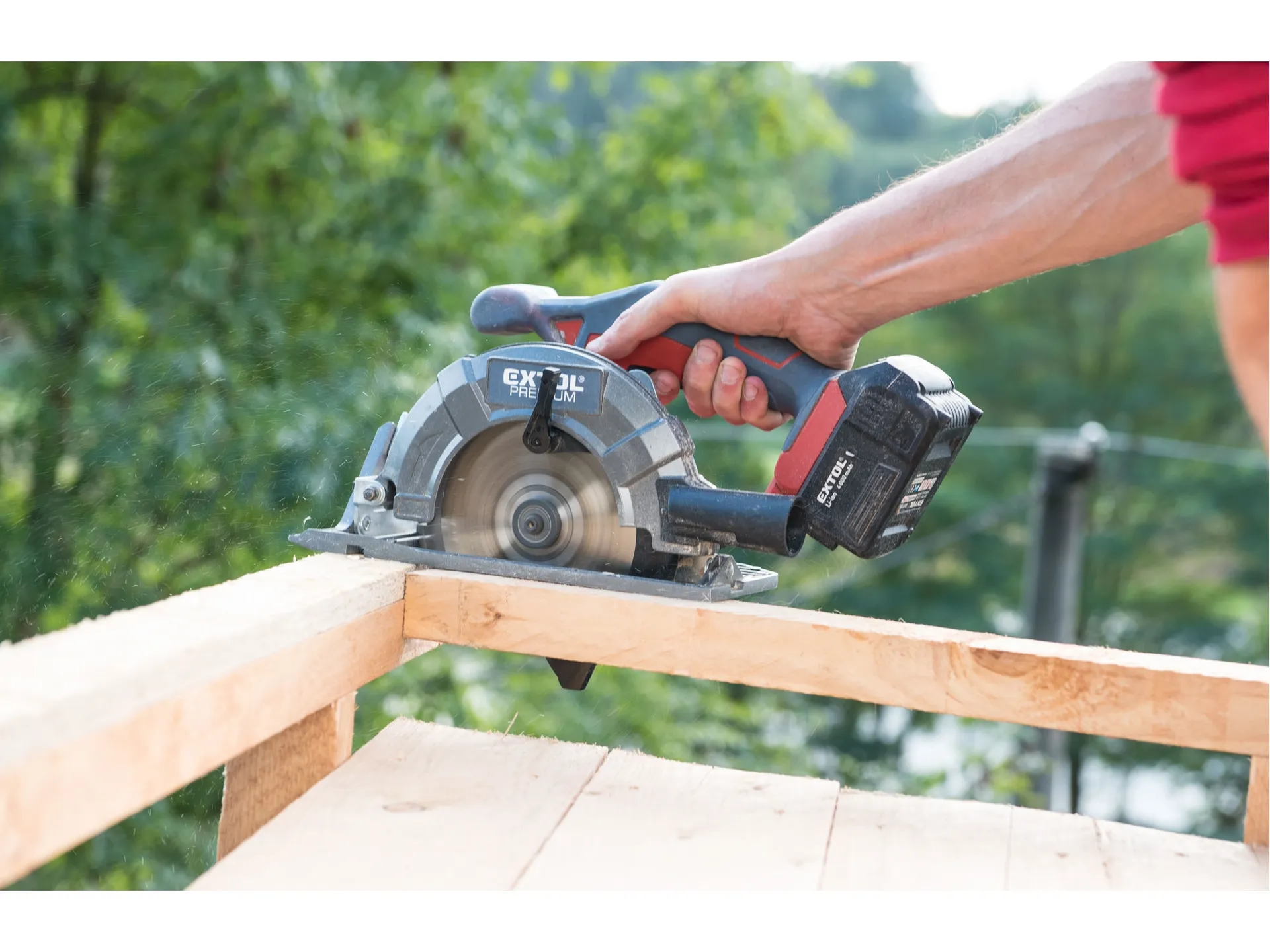 - Aku kotoučová pila je navržena tak, aby uživatelům poskytla výkonné a snadné řezání při různých instalatérských, elektrických, rámovacích, dokončovacích a tesařských pracích. Pila je poháněná silným motorem s otáčkami 3650/min, který umožňuje uživatelům rychle a snadno řezat tvrdým materiálem. Horní a spodní kovový ochranný kryt poskytují vynikající ochranu kotouče při pádu. Gumová měkká rukojeť je ergonomicky navržena tak, aby uživatelům poskytovala vynikající pohodlí a vyvážení pro snadno ovladatelné řezy. Pro běžnou práci dostačují jeden nebo dva 2000mAh akumulátory, které můžete rychle nabít v rychlonabíječce, pro náročnější nebo delší práci doporučujeme větší akumulátory s kapacitou 4000–8000mAh. Akumulátor lze použít ve všech typech nářadí řady EXTOL SHARE20V. Díky použité Li-ion technologii je ho možné kdykoliv dobíjet, aniž by se tím snižovala jeho kapacita. Li-ion akumulátor ztrácí energii vlivem samovybíjení velmi pomalu a vydrží dlouho nabitý a připravený k použití.