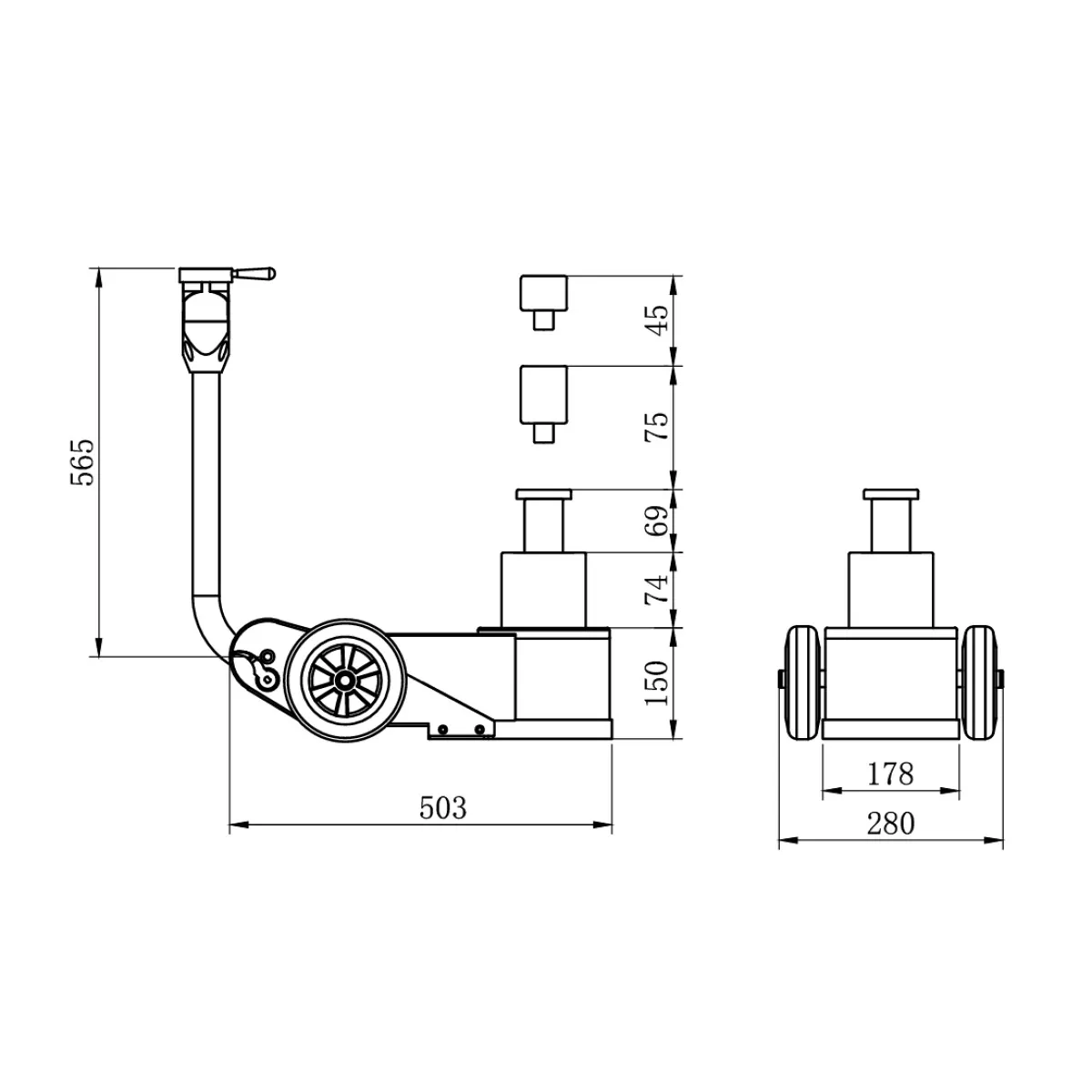 - Dva nástavce na zvedací píst o výšce 45 a 75 mm