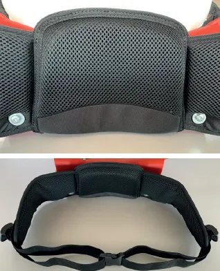 - • Tvoří jej důkladně polstrovaná část chránící a ulevující bederní části zad a také boční části popruhů poskytující maximální podpůrný komfort bokům a kyčlím každého uživatele.