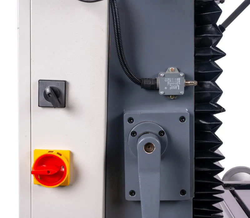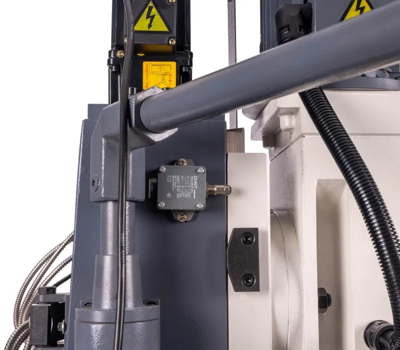 - Ochranné prvky stroje odpovídají platným ISO normám, zahrnují tlačítko pro nouzové zastavení stroje, ochranný kryt vřetene a bezpečnostní vypínače pod ochrannými kryty.
