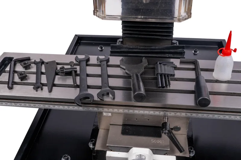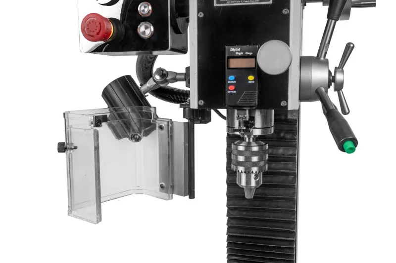 - s ukazatelem teploty pracovního prostředíVariabilní otáčky vřetenaDigitální odečet vysunutí pinoly a rychlosti vřetena Funkce jemného posuvuDlouhý pracovní stůl Pevný sloupFunkce závitováníBezuhlíkový DC motor