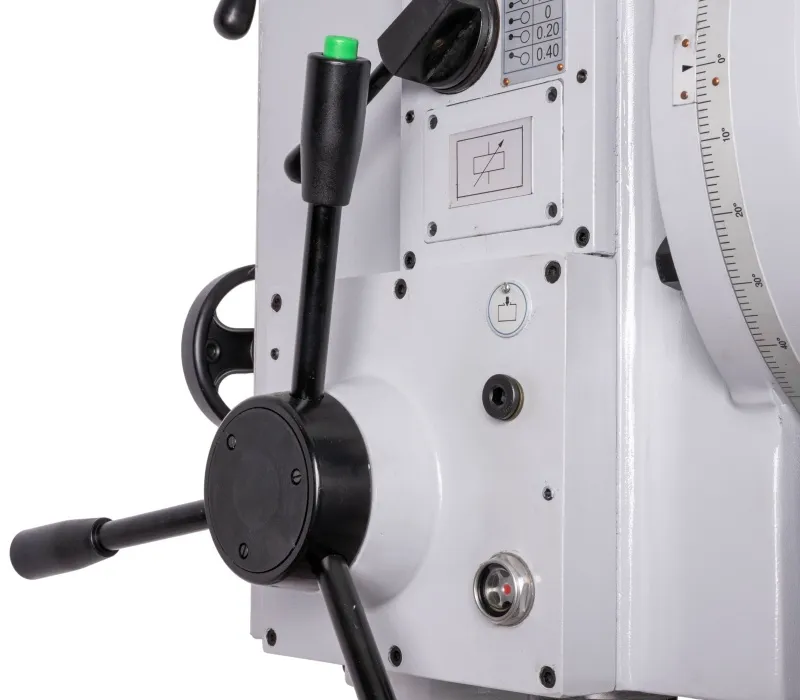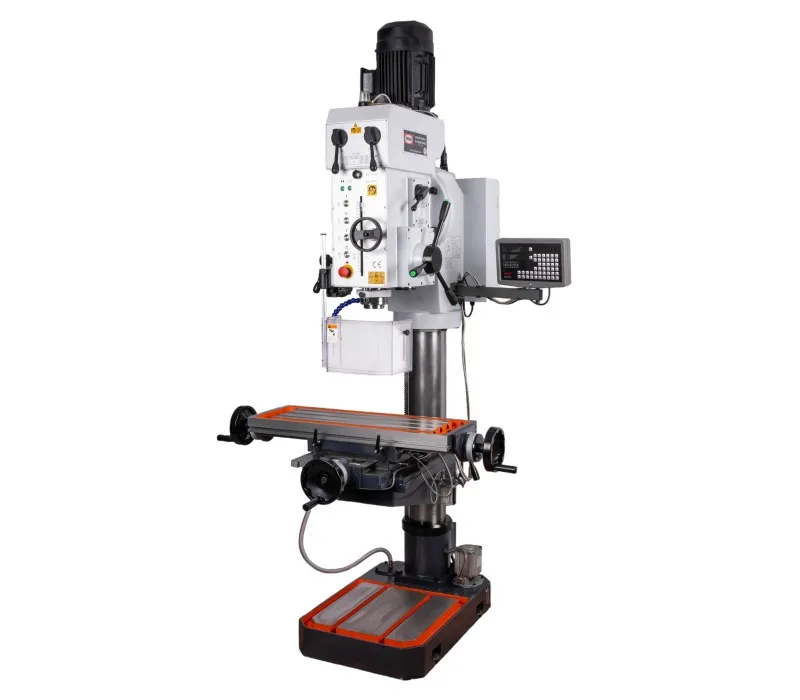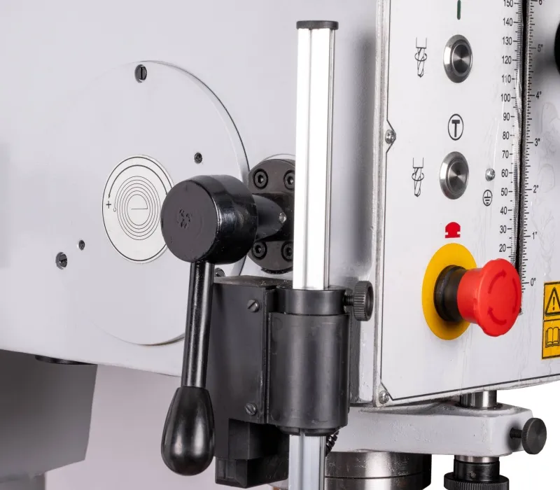 - Tato robustní převodová sloupová vrtačka s mechanickou převodovkou nabízí profesionální výkon s vysokou přesností a velikosti vrtání otvorů do 50 mm a je ideální volbou pro řemeslnou výrobu a zámečnické dílny, kde využijí křížový stůl, automatický posuv vřetene a digitální odměřování v základní výbavě.