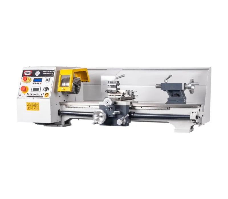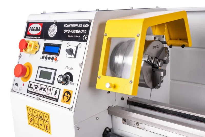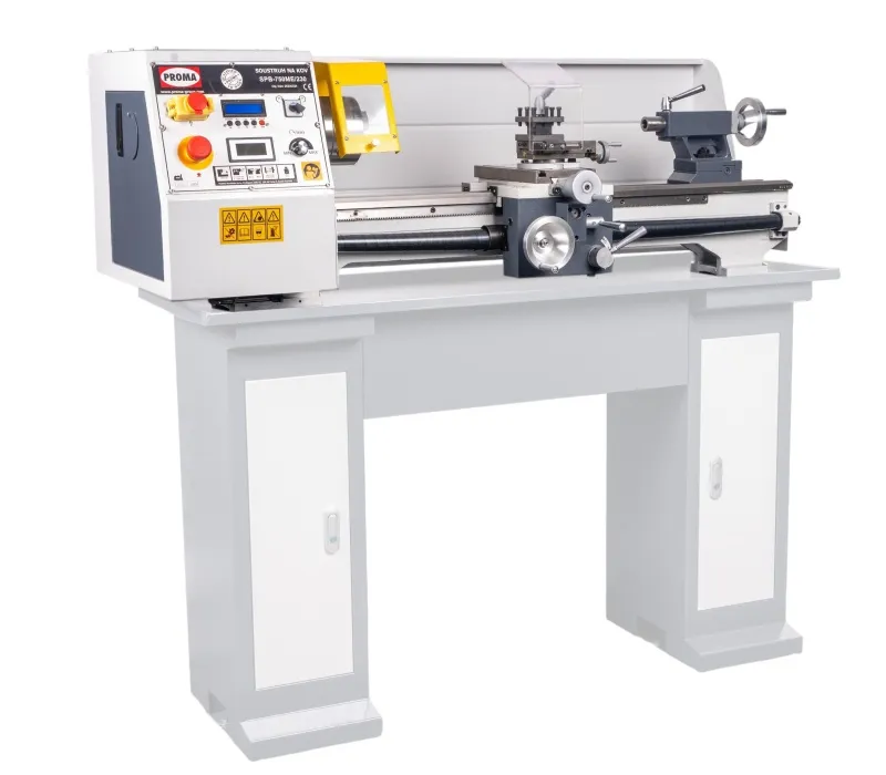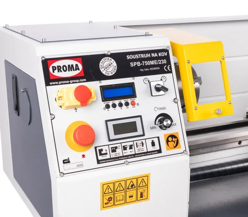 - Stolní soustruh na kov PROMA SPB-750ME/230 s točným průměrem nad ložem 250 mm a elektronicky řízeným podélným posuvem