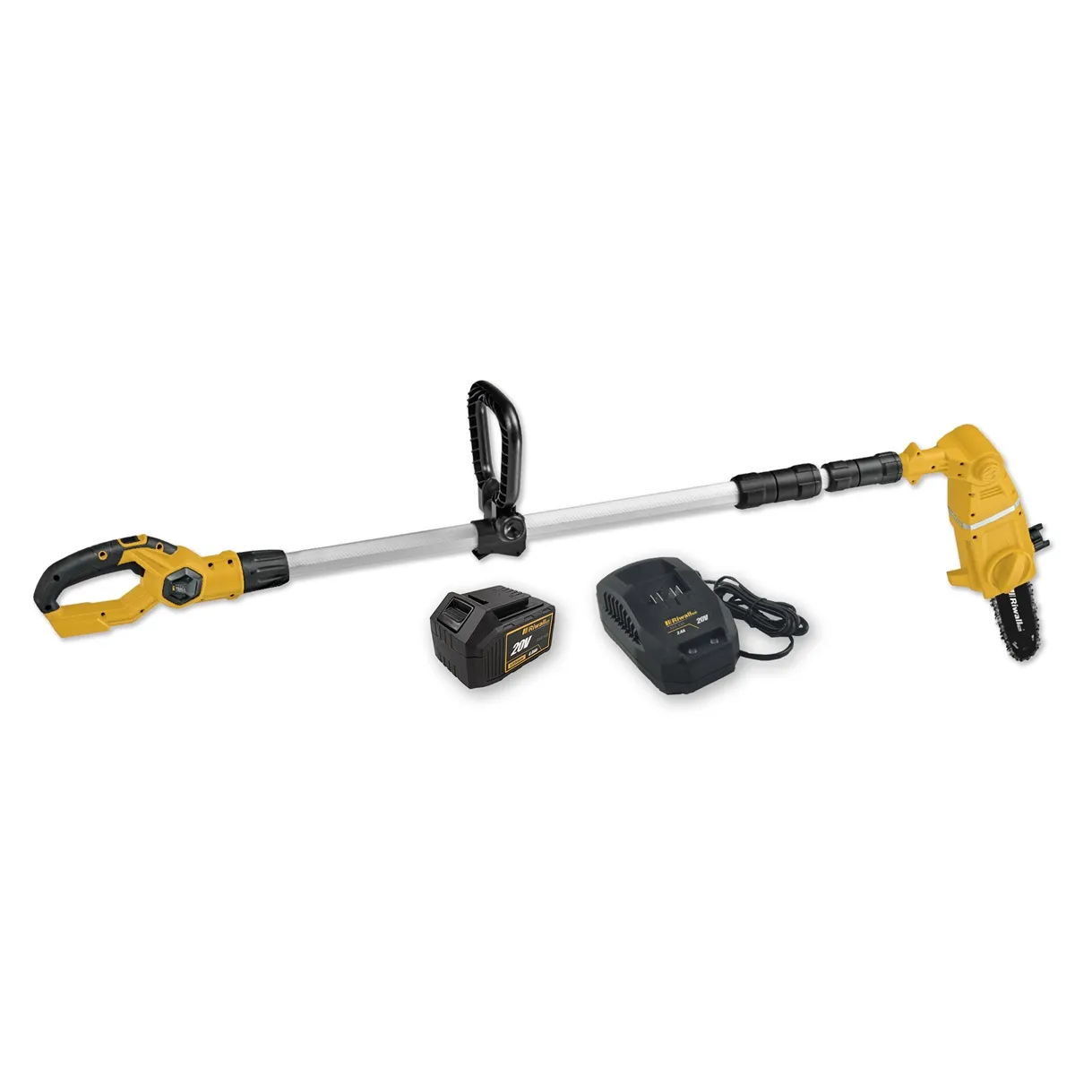 - Verdemax nabízí široký sortiment zahradního AKU programu 20V. Předností je nízká hmotnost, ergonomický tvar a užití velmi kvalitních materiálů. Díky svému praktickému a líbivému provedení zaujme i profesionály, kteří hledají kvalitní nářadí s delší životností a usnadňující práci.Rozmanitost zahradního sortimentu Verdemax splňuje veškeré požadavky jak profesionálů tak i hobby uživatelů.V souladu s ochrannou životního prostředí nabízí také Verdemax aku nářadí s novou baterií Samsung 20V Li-ion. Líbivý design a zaručená spolehlivost činí toto nářadí nepostradatelné pro práci na zahradě. Dodávané se Samsung baterií a nabíječkou. Pro vyšší výkonnost je možné také použít 20V, 4 Ah baterii, na dokoupení.Aku teleskopická prořezávací pila Verdemax PT20Baterie: Li-Ion 20V Samsung