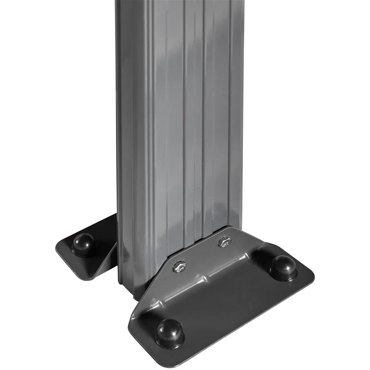 - Základem pergoly je odolná a stabilní konstrukce, určená k pevnému uchycení ke zdi domu. Rám je vyroben z hliníkových profilů o tloušťce 1,1 mm, chráněných kvalitní vypalovací práškovou barvou v odstínu antracit RAL 7016. Pro maximální pevnost je konstrukce doplněna pozinkovanými ocelovými prvky o tloušťce 1,0–3,0 mm, které zajišťují vysokou tuhost a dlouhou životnost i při dlouhodobém venkovním použití. Tři robustní hliníkové sloupky o rozměrech 10 × 4 cm spolu s kompletní kotvicí sadou garantují bezpečné a pevné ukotvení pergoly.