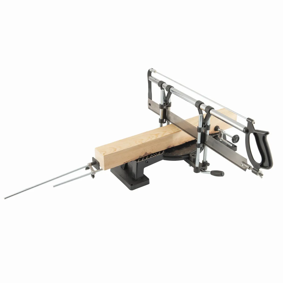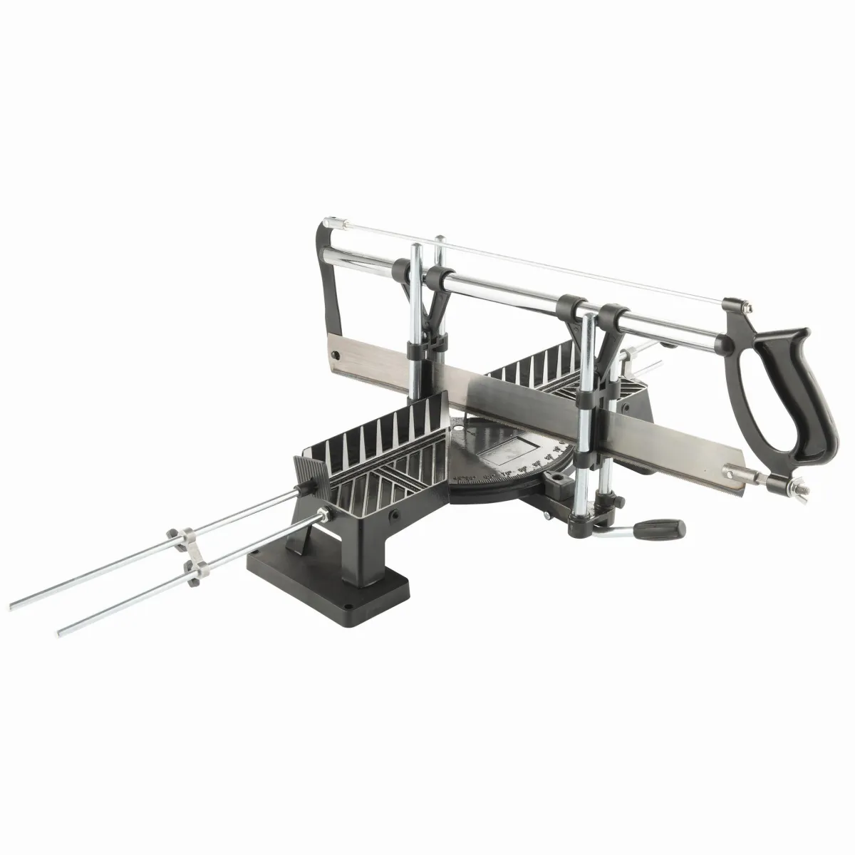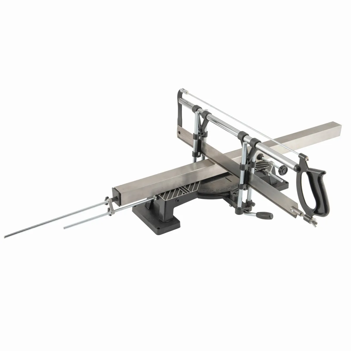 - Pokosová pila je vybavena 4 trubkovými lištami pro dosažení přesného řezu a několika svorkami pro zajištění materiálu.