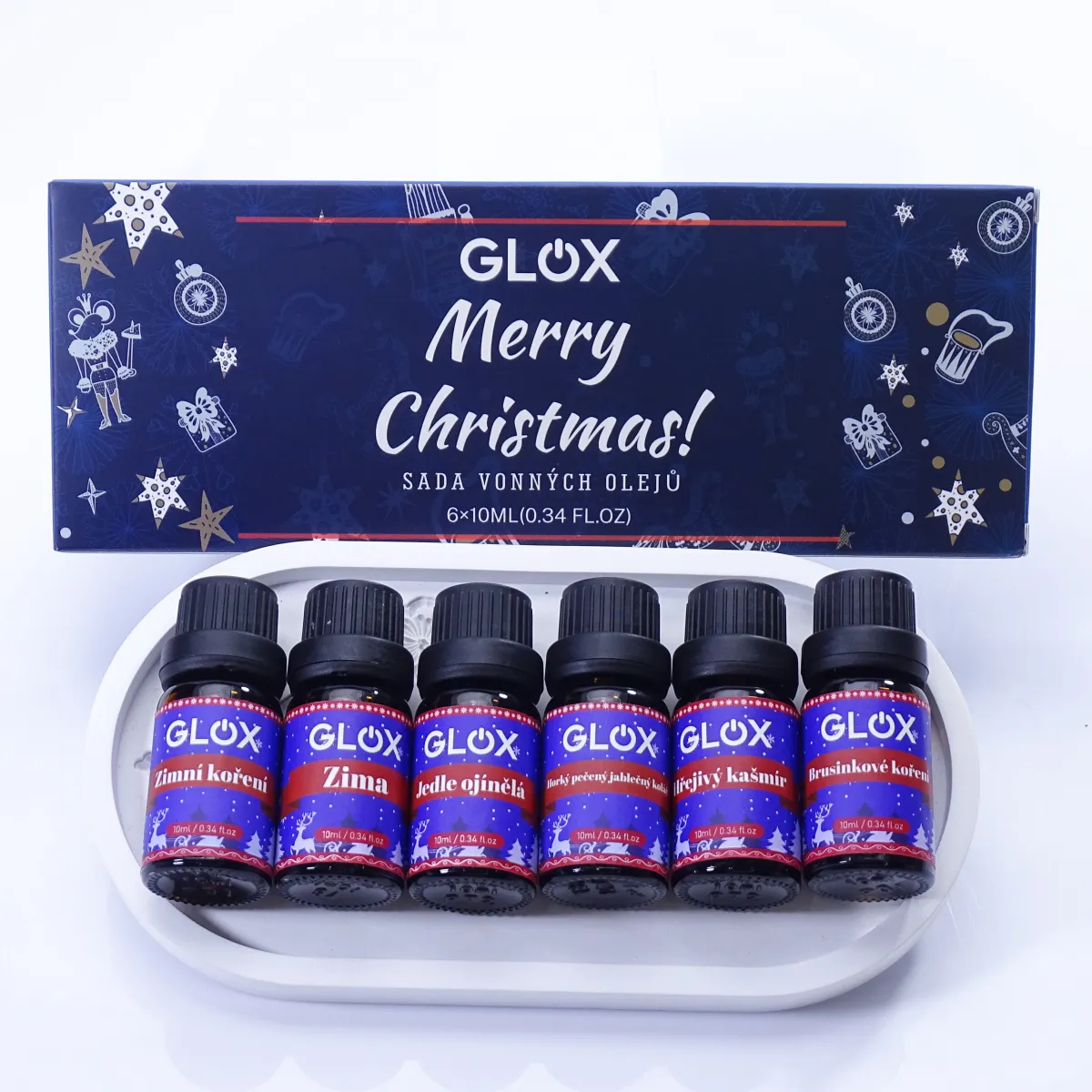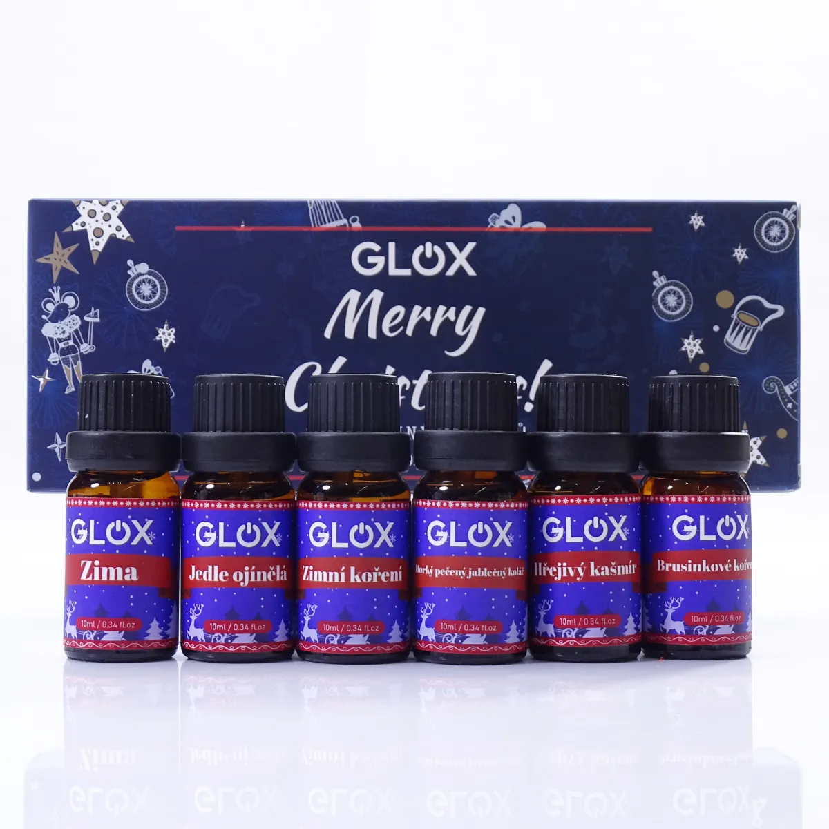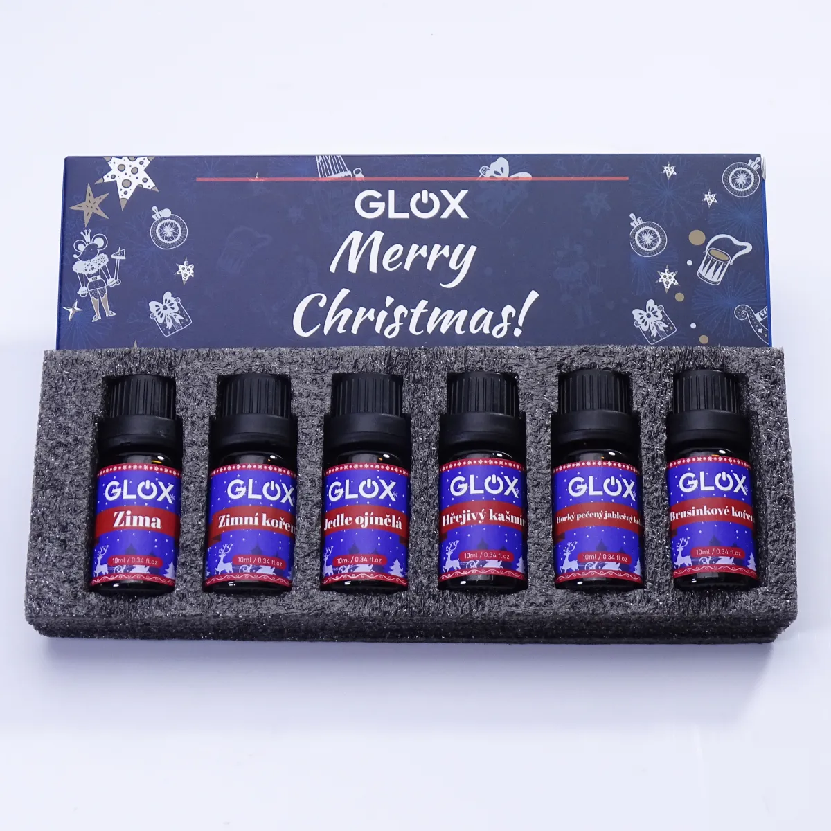 - GLOX Merry Christmas – sváteční sada vonných olejů (6 × 10 ml), která promění váš domov v útulnou zimní oázu.