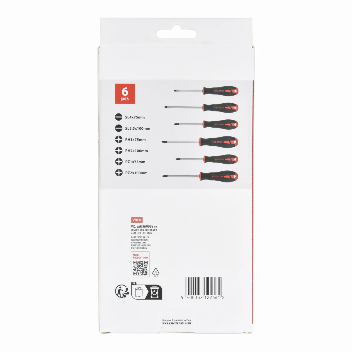 - Tato sada se 6 šroubováky KRTH20001 z naší řady Kreator je vyrobena z chrom-vanadiové oceli a šroubováky mají magnetický hrot, takže můžete snadno upevnit každý šroub.