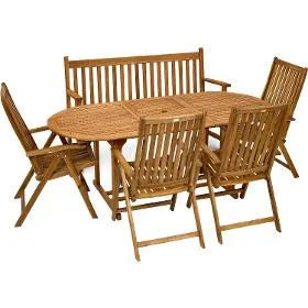 - Základem sestavy jsou 4 křesla, třímístná lavice a rozkládací stůl