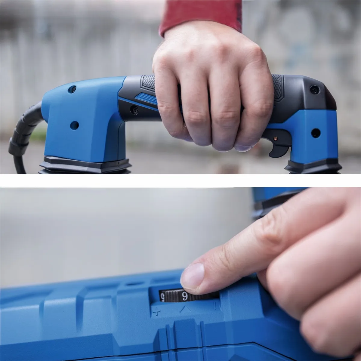 - Silný motor o příkonu 1700 W má zvýšenou ochranu proti přehřátí. Speciální antivibrační technologie spolu s měkčeným povrchem madla výrazně snižuje celkové vibrace. Přídavná pracovní rukojeť lze nastavit v rozsahu 360° bez použití nářadí pro ergonomickou a neunavující práci. K dispozici je 6 stupňů nastavení frekvence příklepu (200-2100 úder./min) v závislosti na typu materiálu. Praktická aretace chodu spínače umožňuje nepřetržitý chod. Upínání SDS MAX pak zajišťuje snadnou a rychlou výměnu nástroje.