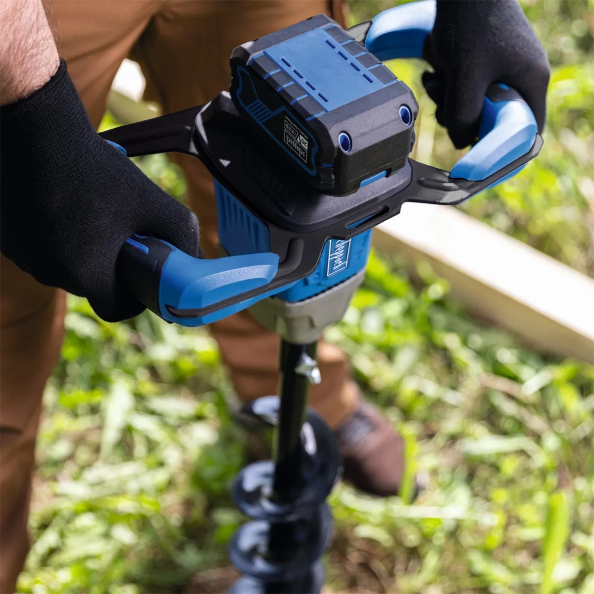 - Výkonný akumulátorový zemní vrták Scheppach BC-EB100-X je ideálním pomocníkem při vrtání otvorů pro plotové sloupky, základy nebo výsadbu rostlin, keřů a stromků.