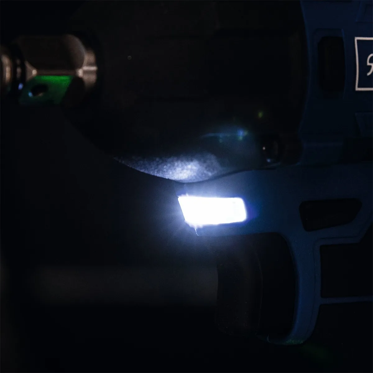 - Díky absenci zpětného rázu (běžné u vrtaček) nezatěžuje zápěstí a práce je tak velmi pohodlná. Stroj je vybavený LED osvětlením pracovního prostoru, který svítí i 10 s po vypnutí stroje, ergonomickou rukojetí s protiskluzovými zónami, rychloupínacím sklíčidlem 1/2", levým a pravým chodem a odnímatelným ocelovým klipem na opasek. Praktická Quick-Stop funkce v levém chodu automaticky zastaví stroj při uvolnění šroubu, což zabraňuje pádu materiálu na zem.