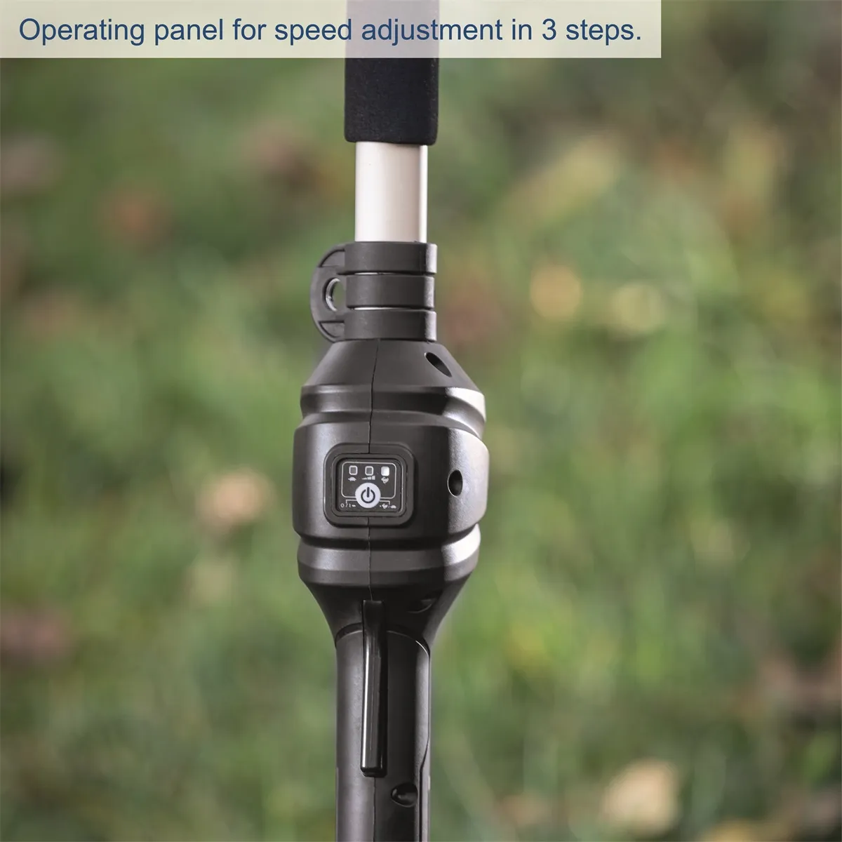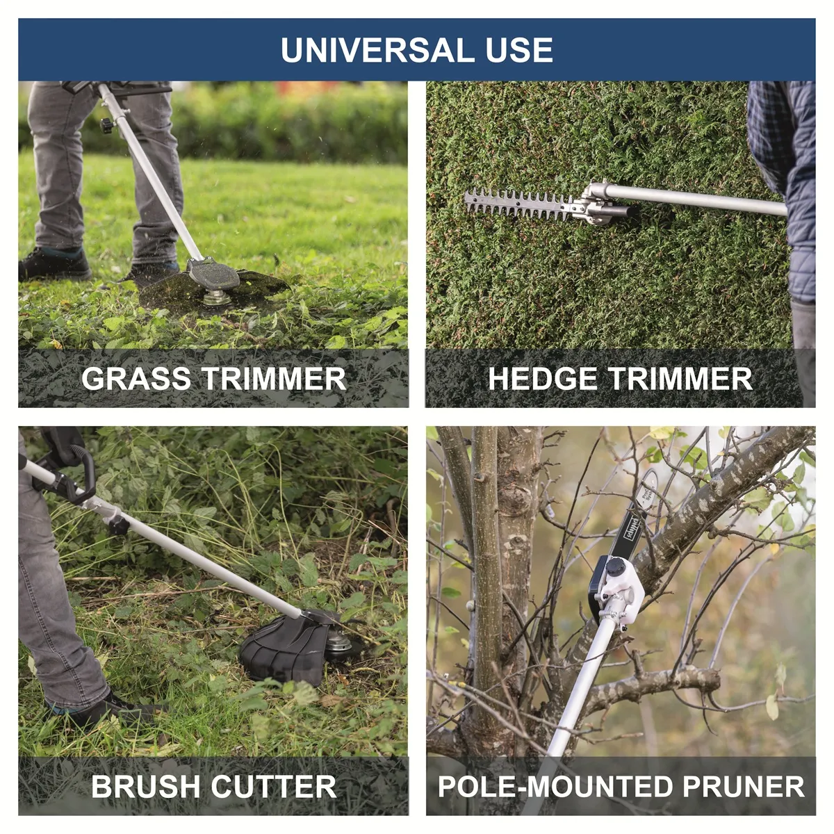 - Zařízení umožňuje snadnou výměnu nástavců bez použití nářadí a nastavení 3 rychlostí nástrojů prostřednictvím ovládacího panelu blízko rukojeti. Pohodlí při práci zajišťuje ergonomický popruh přes rameno s rychloupínacím mechanismem, který snižuje únavu i při delším použití.