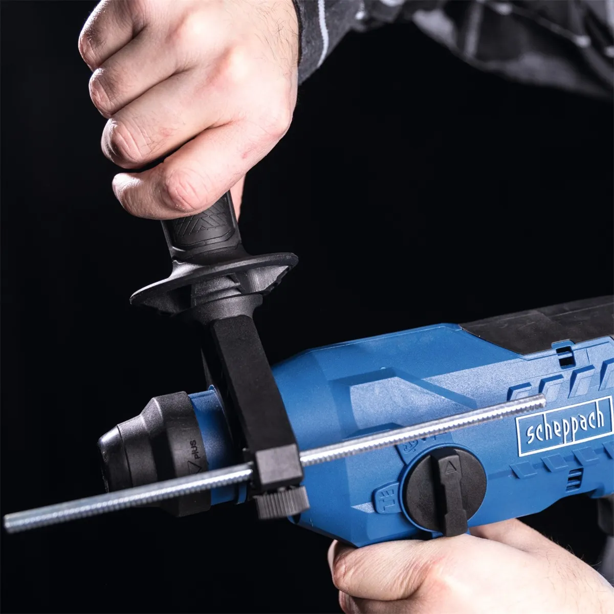- Uchycení SDS Plus zajišťuje snadnou a rychlou výměnu nástroje bez použití nářadí. Praktické přídavné madlo s nastavitelným dorazem lze otočením rukojeti jednodušše polohovat dle potřeby. Další výbava zahrnuje například měkčené protiskluzové rukojeti nebo LED osvětlení s funkcí dosvitu 10 s po vypnutí.