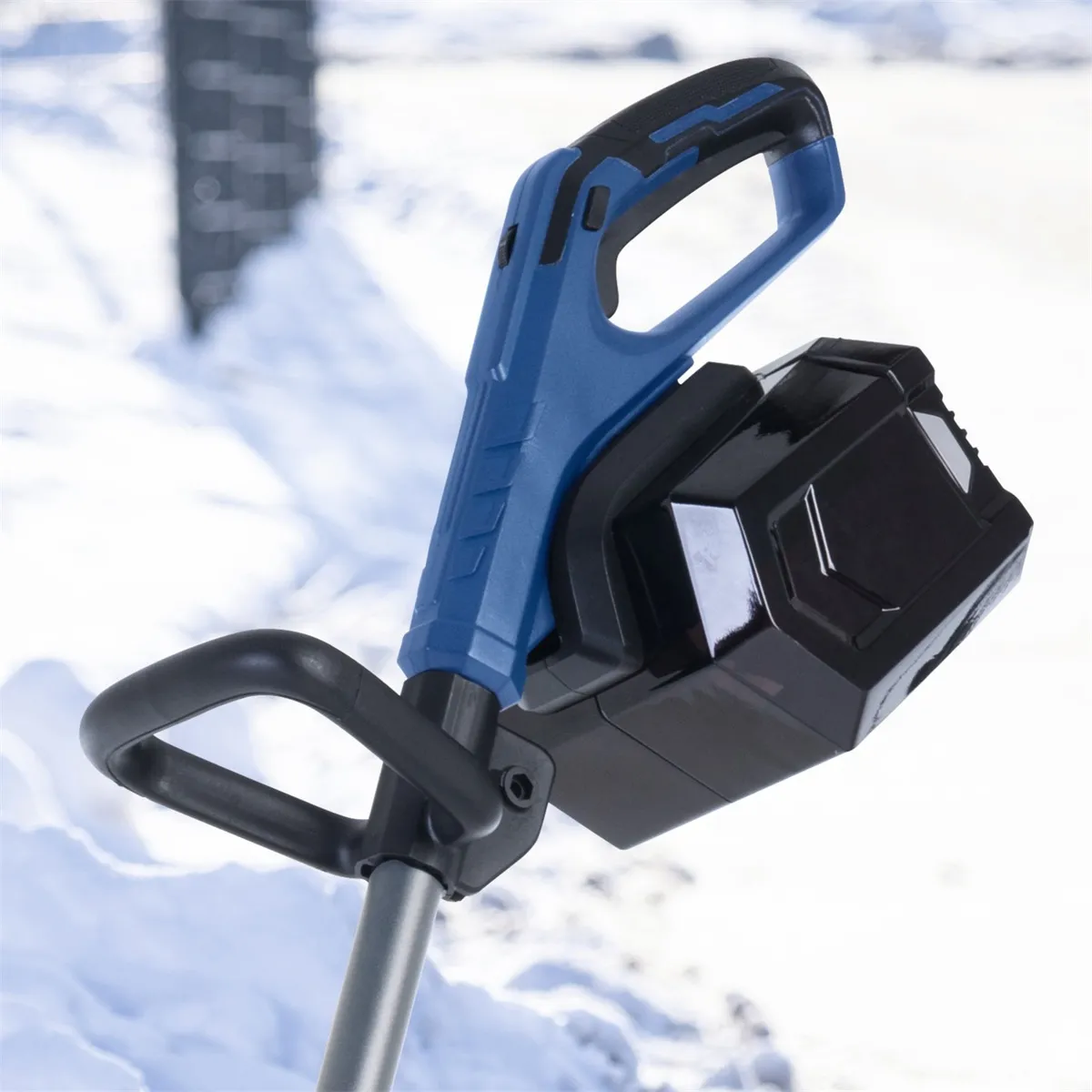 - Stroj umožňuje nastavení směru vyhazování sněhu vlevo, vpravo nebo přímo vpřed. Rychlost můžete upravovat v šesti úrovních podle hloubky a typu sněhu. Maximální pracovní šířka je 40 cm a fréza zvládne odklidit až 20 cm vysokou vrstvu čerstvého sněhu. Pro bezpečné používání je fréza vybavena bezpečnostním spínačem, který zamezuje nechtěnému spuštění. Zatímco hlavní ergonomická rukojeť s měkkým protiskluzovým povrchem zajišťuje pohodlné ovládání, další přídavná umožňuje práci oběma rukama. Fréza se navíc snadno přenáší díky integrovanému madlu a je i samostatně stojící, což usnadňuje její skladování. S maximální vzdáleností vyhazování sněhu až 6 metrů vám tato fréza značně usnadní úklidové práce. Stroj se dodává bez baterie a nabíječky.