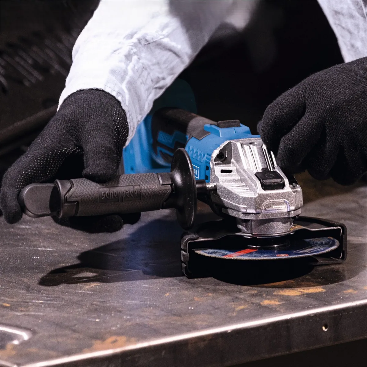 - Výkonná aku úhlová bruska Scheppach C-AG125-X je skvělým pomocníkem pro řezání, broušení i leštění. Její štíhlé tělo s hliníkovou přední částí a měkkými zónami úchopu umožňuje snadnou práci i v úzkých prostorách. Bezpečnost při práci zvyšuje ochranný kryt, který lze snadno nastavit bez použití nářadí.