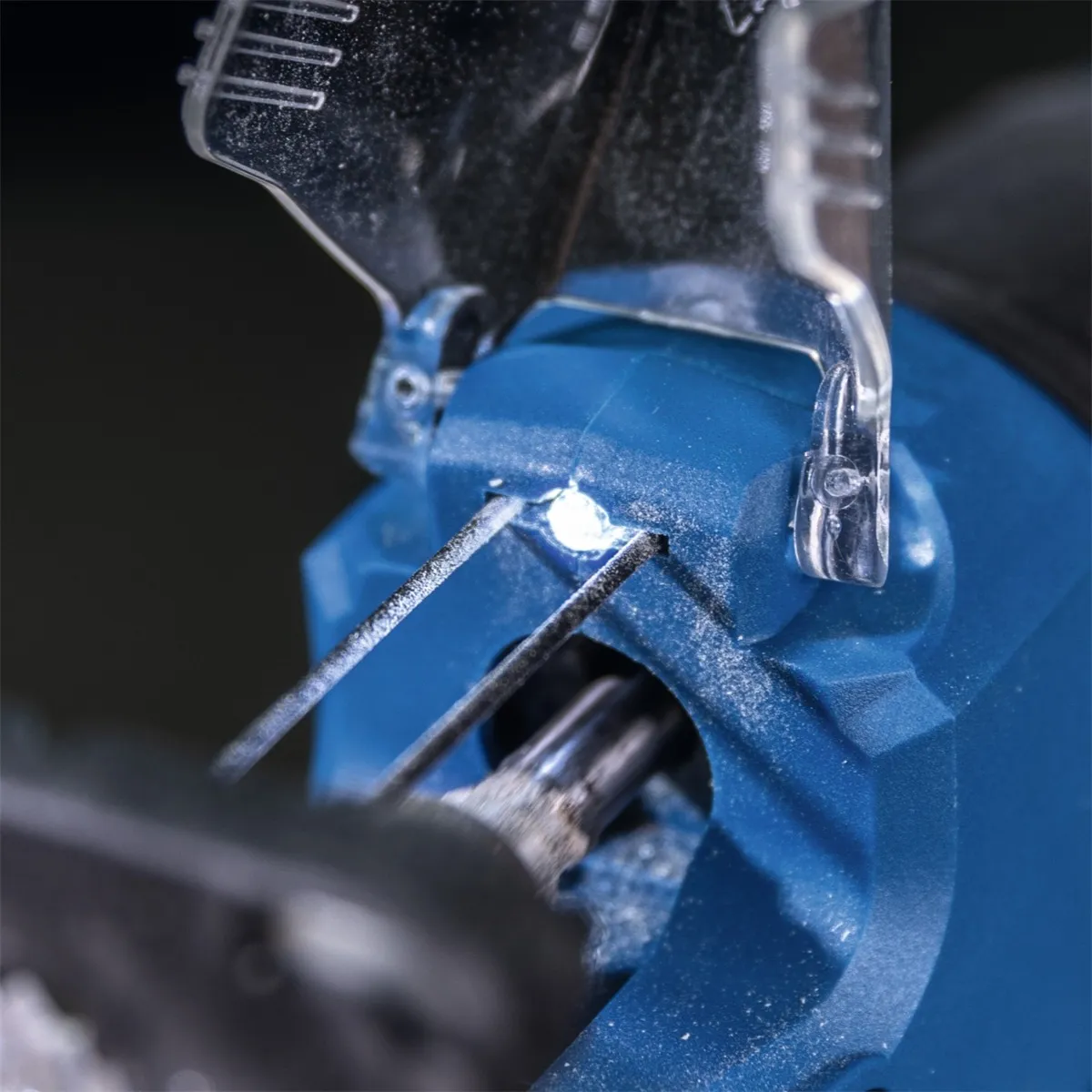 - Pila má snadné jednoruční ovládání, elektronické nastavení rychlosti, LED osvětlení pracovního prostoru a 3-stupňové nastavení předkmitu pro optimalizaci rychlosti řezání. Čistotě řezu napomáhá i integrovaná ochrana proti otřepům.