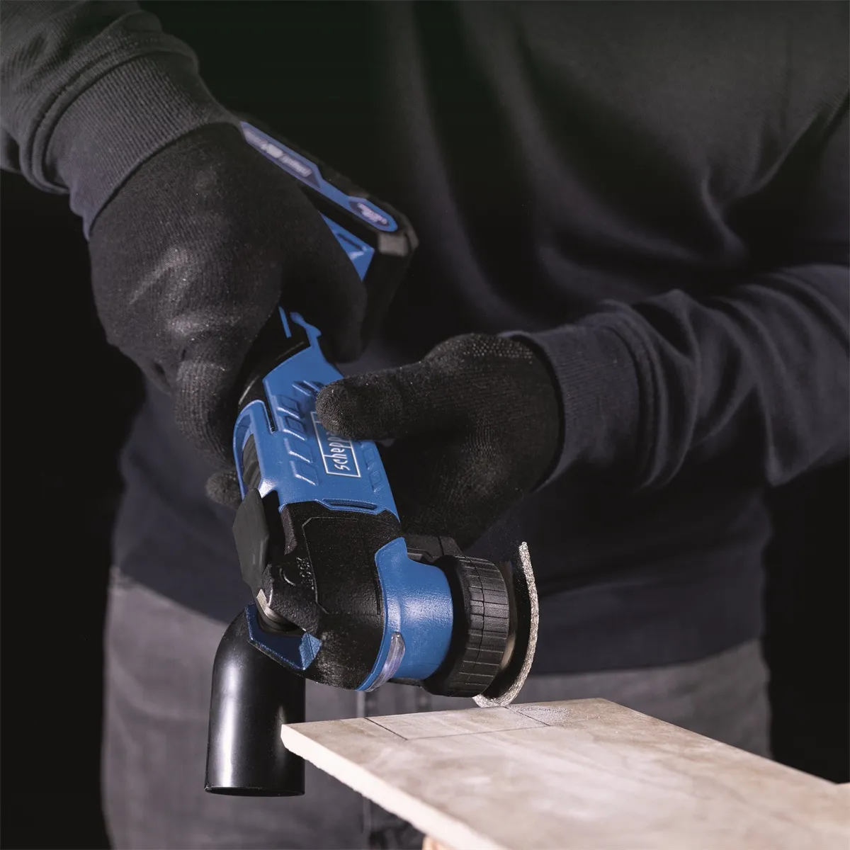 - Skvěle vybavený multifunkční akumulátorový nástroj Scheppach C-MT40-X se hodí na odstraňování barvy nebo lepidel, broušení a řezání v rozích a úzkých prostorech, řezání trubek, odstranění silikonových tmelů, renovace okenních rámů, vyřezávání dlaždic, řezání keramických obkladů, sádrokartonů, plastů a měkkých kovů nebo broušení či rašplování menších ploch.