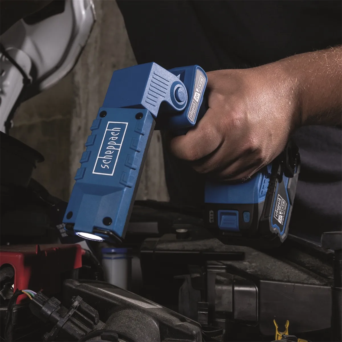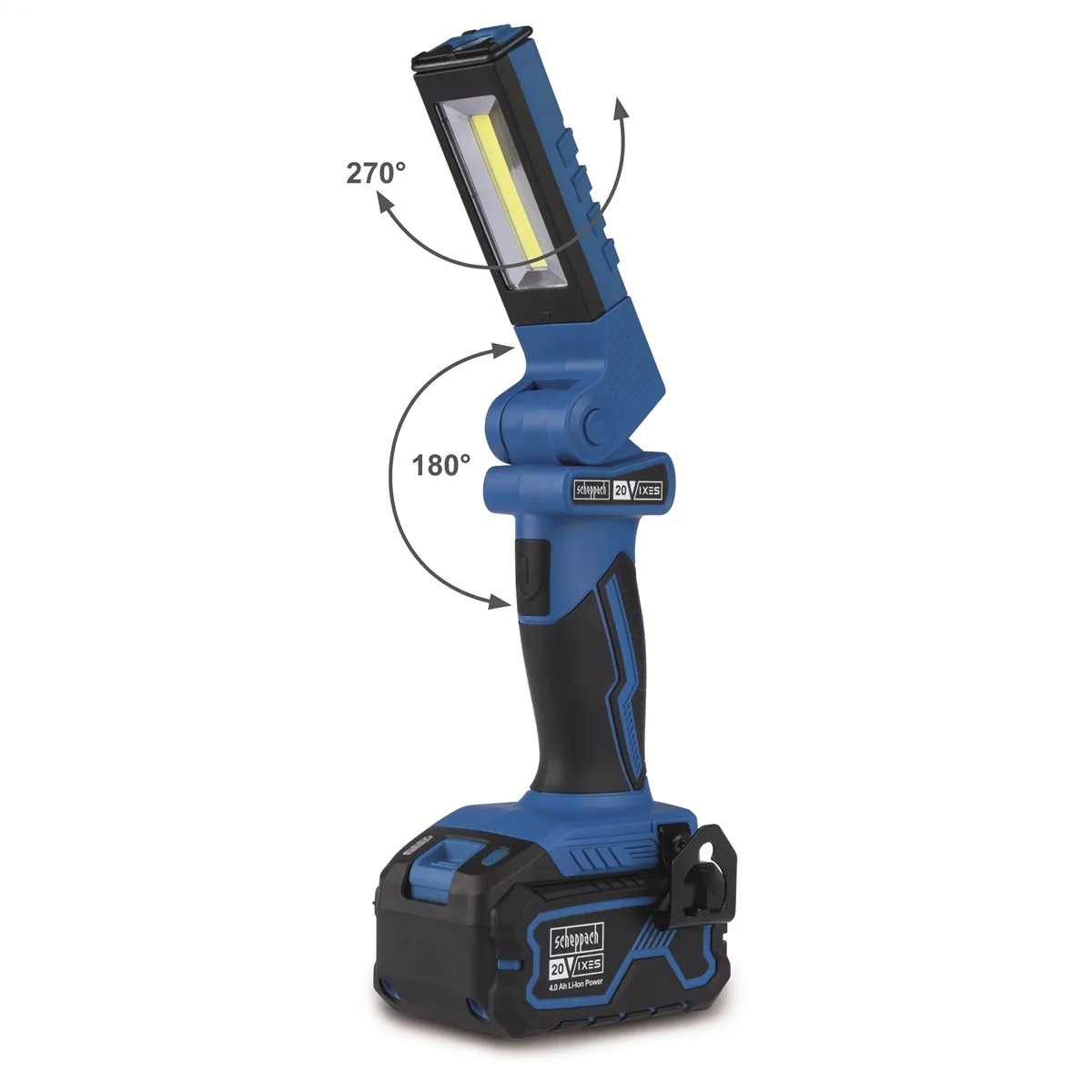 - Dopřejte si dokonalé osvětlení při práci nebo na cestách s výkonnou akumulátorovou svítilnou Scheppach C-WL20-X. Díky provozu bez kabelu a kompaktnímu designu je tato svítilna ideální pro použití v dílně, při opravách automobilů, kempování či jiných aktivitách.