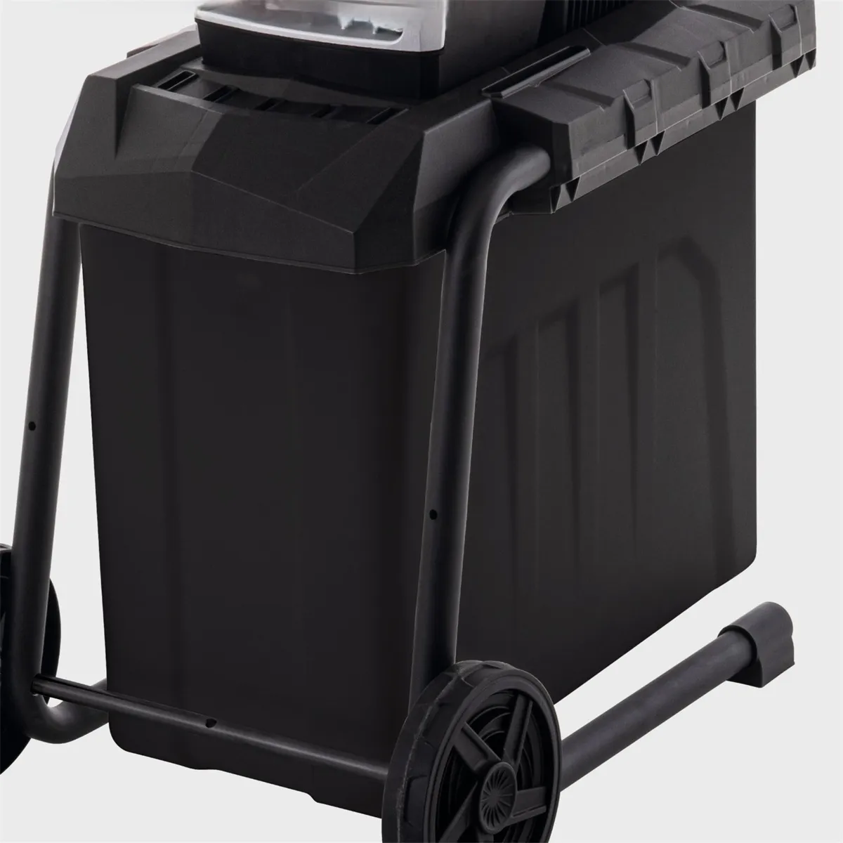 - Pro snadný transport po zahradě je drtič vybaven pojezdovými koly, madlem a také tyčí na posunování větví.