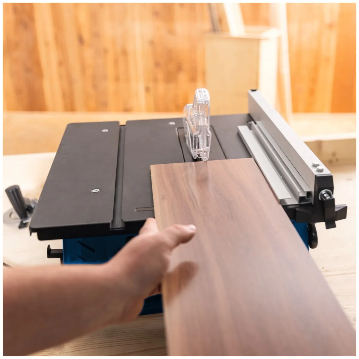 - Pro maximální přesnost je pila vybavena podélným dorazem s oboustranným upevněním a integrovanou stupnicí, díky kterému materiál vedete jistě a bez odchylek. Možnosti práce dále rozšiřuje pokosový úhelník s nastavením od -60° do +60°, ideální pro úhlové řezy. O čistější pracovní prostředí se stará integrovaná přípojka k odsávání pilin a bezpečnost při práci zvyšuje kryt pilového kotouče.