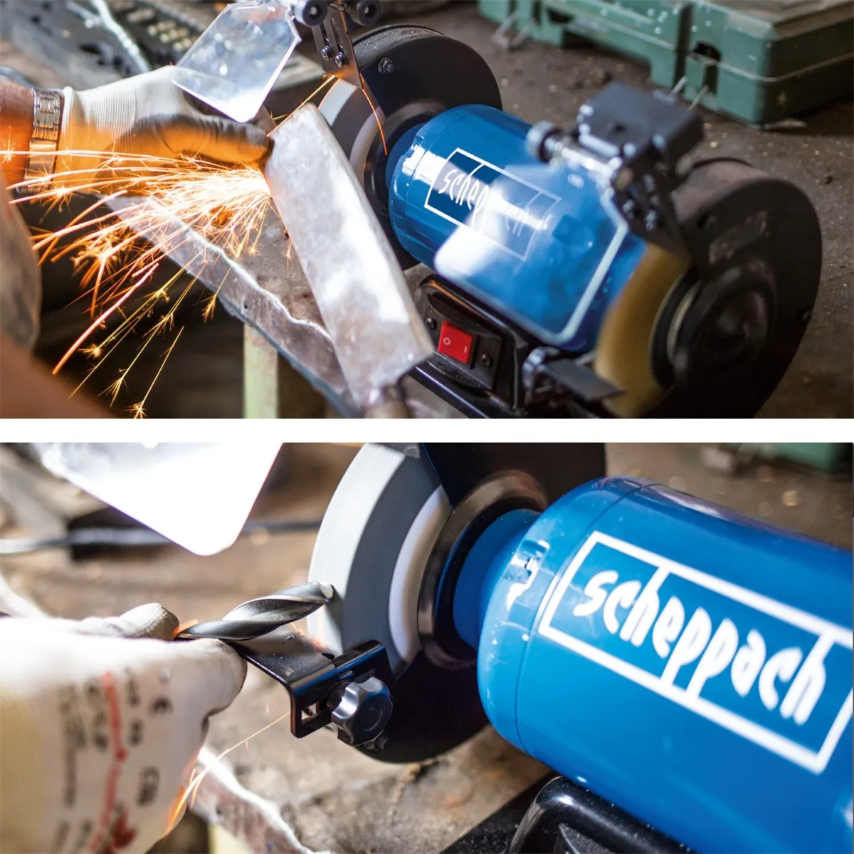 - Základní model kotoučové brusky Scheppach SM 150 L nezklame ani náročnější hobby uživatele. Nabízí pevnou konstrukci, přesné vedení brusných kotoučů a tichý, výkonný a bezúdržbový indukční motor.