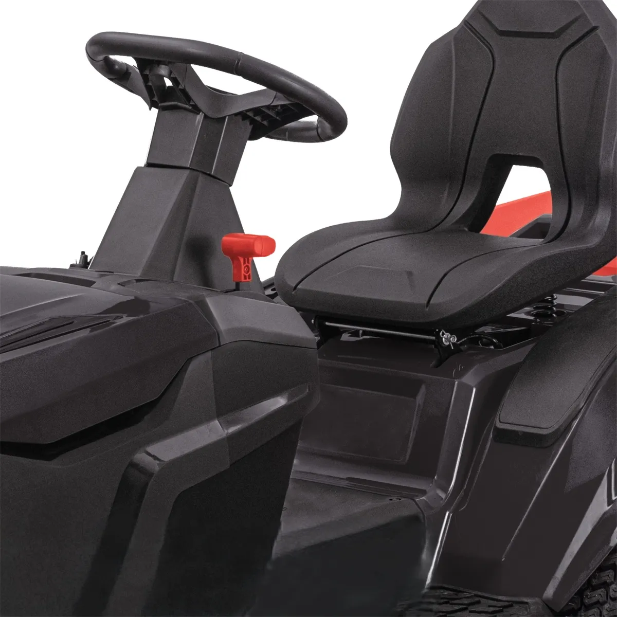 - Traktor je navržen tak, aby byl komfortní i při delší práci. Velká kola (vpředu 15" a vzadu 18") zajišťují stabilní jízdu, lepší průchod terénem a vyšší pohodlí při překonávání nerovností. Praktickým prvkem jsou také LED světlomety, které zlepšují viditelnost při práci za šera nebo v horších světelných podmínkách.