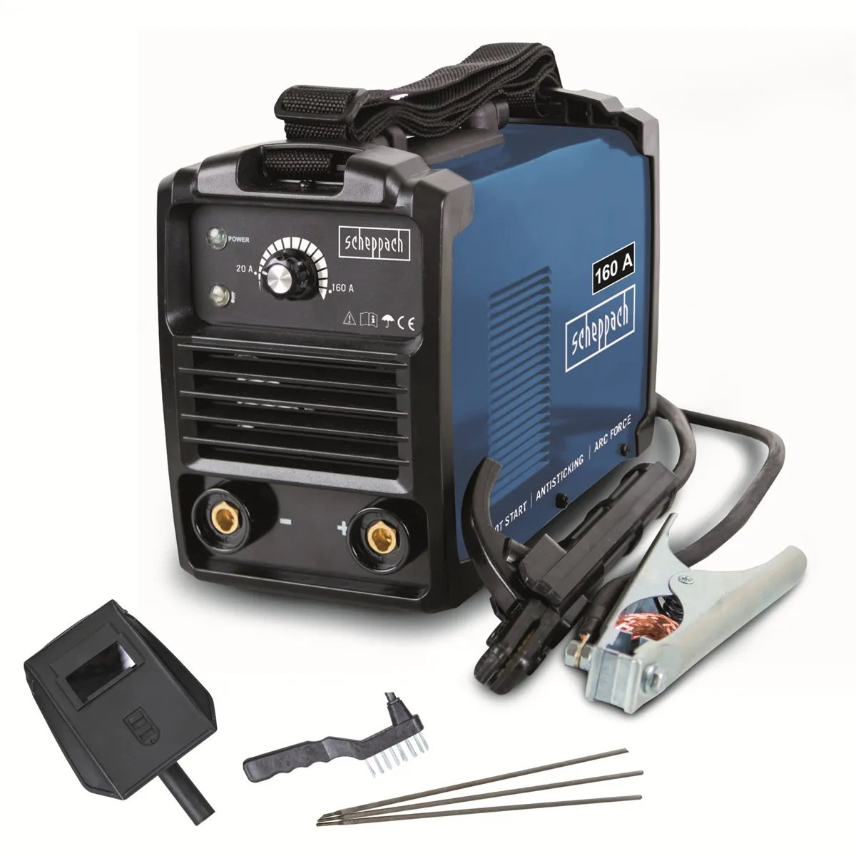 - Svářecí invertor Scheppach WSE1100 je kompaktní, lehká, snadno ovladatelná a velmi výkonná svářečka, která se hodí pro svářecí práce v garážích, dílnách, lehkých řemeslných provozech, okolo domu, chalupy apod. Dodává se v praktickém setu, ve kterém naleznete vše potřebné k tomu, abyste mohli ihned začít svařovat – kabel se zemnícími kleštěmi, kabel s držákem elektrod, ochranný štít, kladívko na strusku s drátěným kartáčem, 3x svářecí elektrodu a popruh na rameno a výklopné madlo pro snadné přenášení. Stroj je vybaven účinným chlazením a ochranou proti přehřátí a rovněž ochranou proti přetížení se světelnou indikací. Svařovací proud lze nastavit postupně otočným ovladačem v rozmezí 20 až 160 A. Stroj byl se skvělými výsledky testován českými profesionálními svářeči a odbornými prodejci svářecí techniky. Díky vybavení nejmodernějšími technologiemi, které ulehčují svařování, se hodí nejenom pro zručné svářeče, ale i pro naprosté začátečníky.