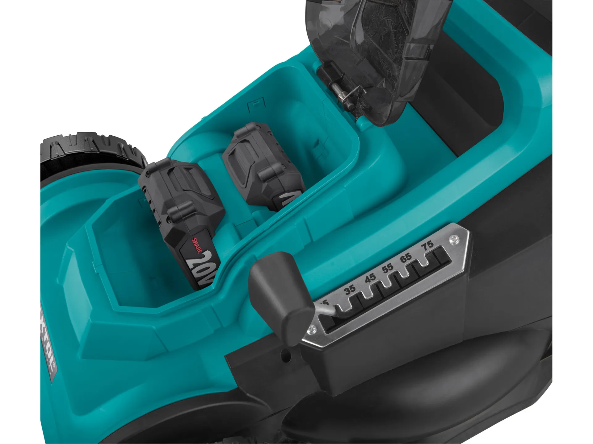 - Aku sekačka EXTOL INDUSTRIAL SHARE20V se záběrem 43cm je navržená pro pohodlné domácí sečení bez kabelu, s nízkou hlučností a jednoduchou obsluhou. Díky dvěma 20V akumulátorům pracuje jako 40V stroj, takže má dost síly i tehdy, když je tráva hustší nebo vlhčí. Systém SHARE20V je postavený na sdílení jedné baterie napříč aku nářadím, takže stejný akumulátor můžete používat i v dalších strojích (např. vrtačky, pily, fukary) této platformy a zjednodušit si tak výbavu i nabíjení. O pohon se stará moderní bezuhlíkový brushless motor, který je účinnější a odolnější než klasické kartáčové řešení, a navíc lépe hospodaří s energií. Pro různé podmínky má sekačka dvě rychlosti: eco režim 2900 ot./min pro běžné udržovací sekání a 3300 ot./min ve chvíli, kdy potřebujete maximální výkon. Záběr 43 cm ji předurčuje pro pravidelné sekání trávníků přibližně 400–600m², přičemž skutečná výdrž záleží na výšce porostu a stylu práce. Výšku sečení nastavíte v rozsahu 25–75mm, takže si snadno zvolíte krátké nebo vyšší nastavení dle aktuálního místa na zahradě. Při manipulaci potěší pevná madla a masivní kola, která pomáhají jak při jízdě nerovnostmi tak i ve svahu. Sběrný koš o objemu 45l má indikátor naplnění a díky částečně textilní konstrukci je skladnější. Když chcete trávník přirozeně přihnojovat, jednoduše nasadíte mulčovací nástavec. Součástí jsou dvě Li‑ion baterie 2×2 Ah s ukazatelem nabití a dvoukanálová rychlonabíječka, která je dobije zhruba do hodiny. Bezpečnost zvyšuje dvojité jištění spouště proti nechtěnému startu, takže sekačka působí jistě a dospěle i při běžném domácím použití.