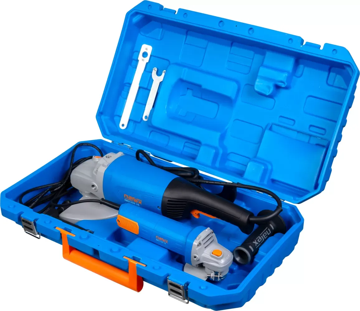 - Set úhlových brusek NAREX v praktickém kufru. Součástí jsou úhlové brusky EBU 125-10 a EBU 230-26