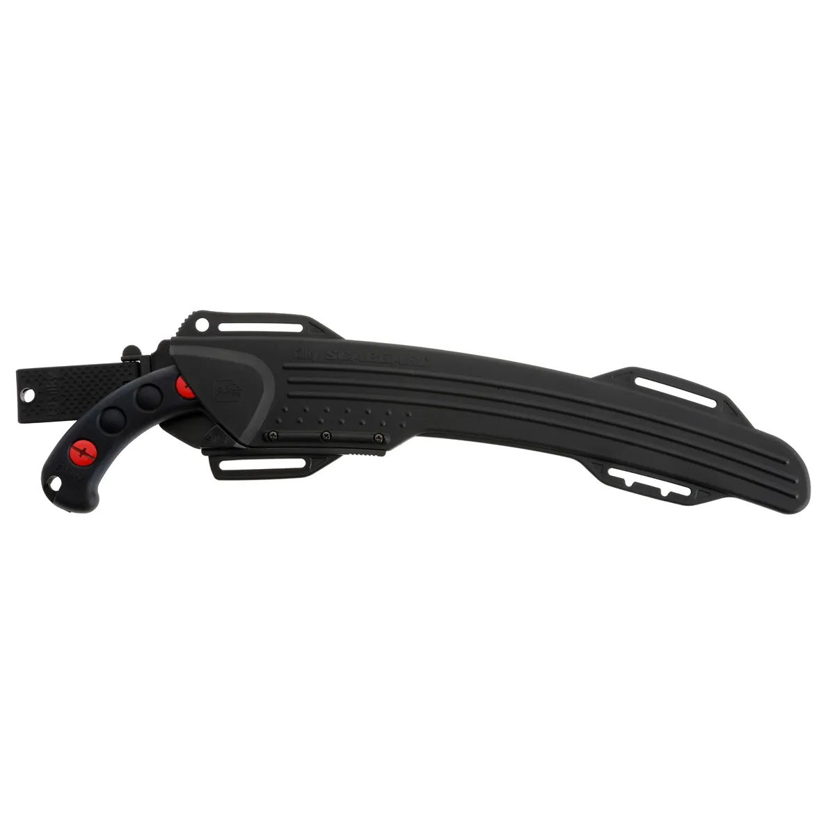 - Pila je standartně dodávána s praktickým pouzdrem, které je navrženo tak, aby pilu drželo ve všech polohách a v případě potřeby ji bylo možné vytáhnout pouze jednou rukou.