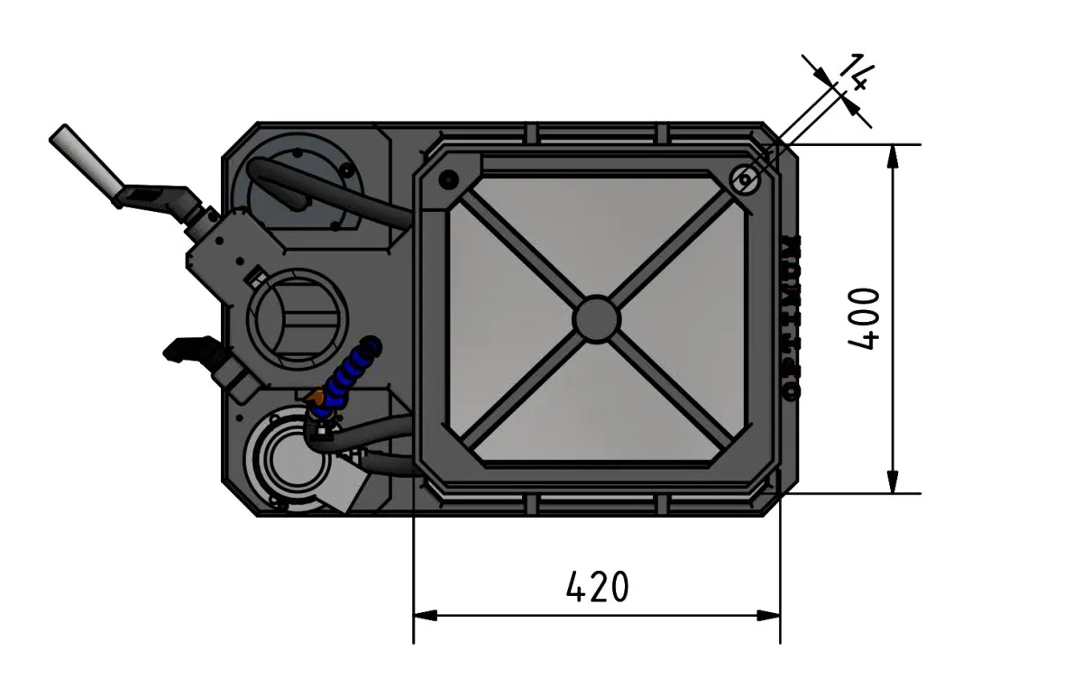 - T-drážky | rozteč : stůl diagonálně / základna 150 mm