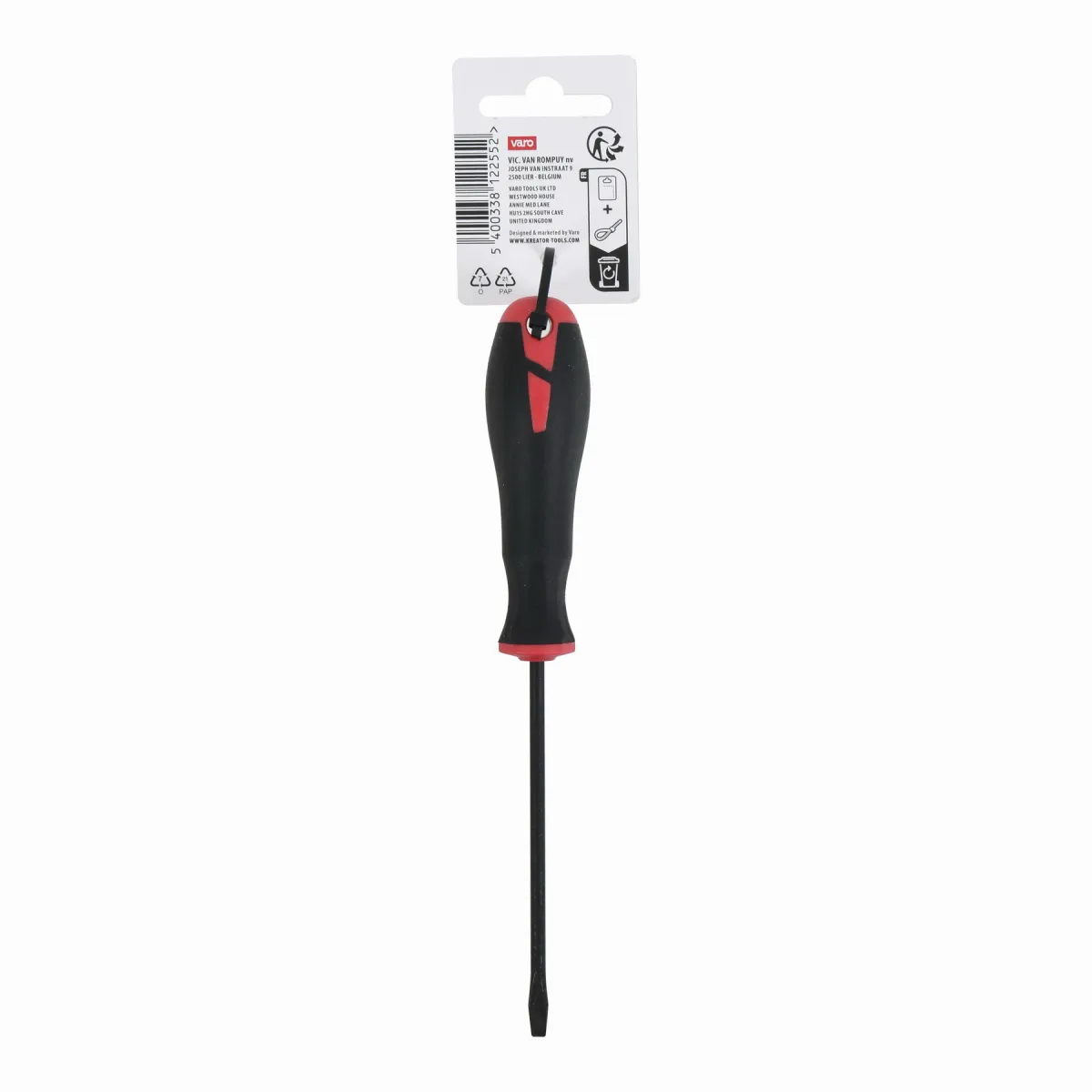 - Tento plochý šroubovák 4 KRTH20303 z naší řady Kreator má 100 mm dlouhou stopku a je vyroben z vysoce kvalitní oceli S2.