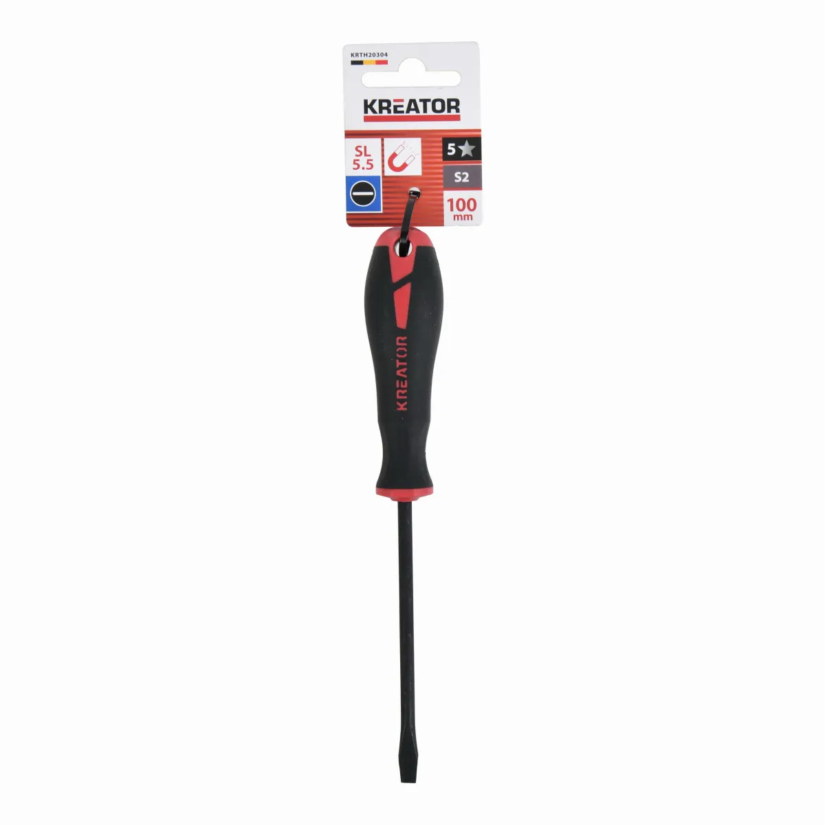 - Tento plochý šroubovák 5,5 KRTH20304 z naší řady Kreator má 100 mm dlouhou stopku a je vyroben z vysoce kvalitní oceli S2.