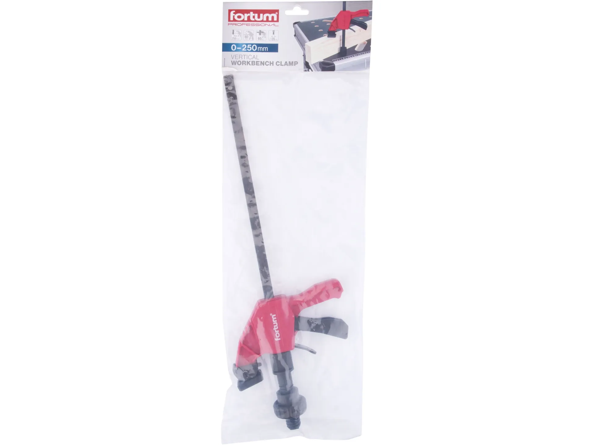 Svěrka přítlačná vertikální - k prac. stolům s otvory o 20mm, 0-250mm FORTUM 4759991